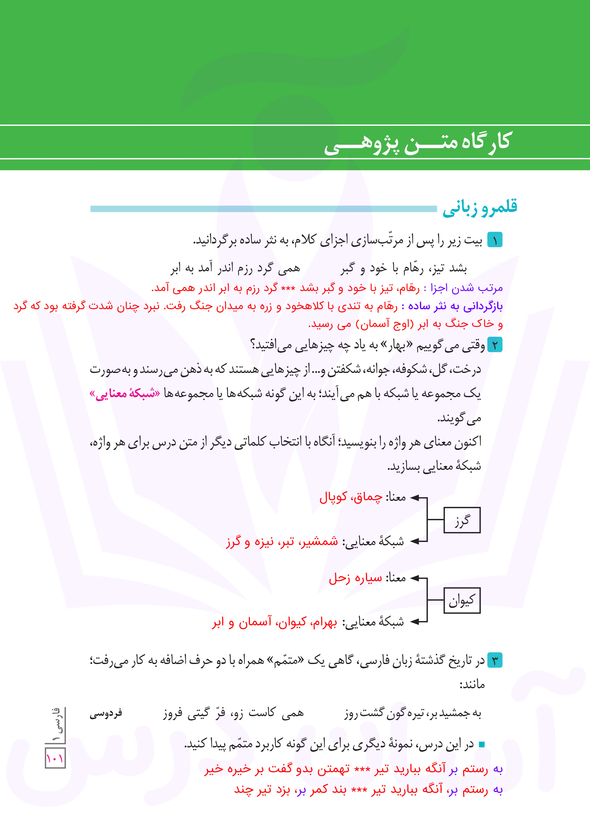 فارسی دهم : پاسخ قلمرو زبانی صفحه ۱۰۱