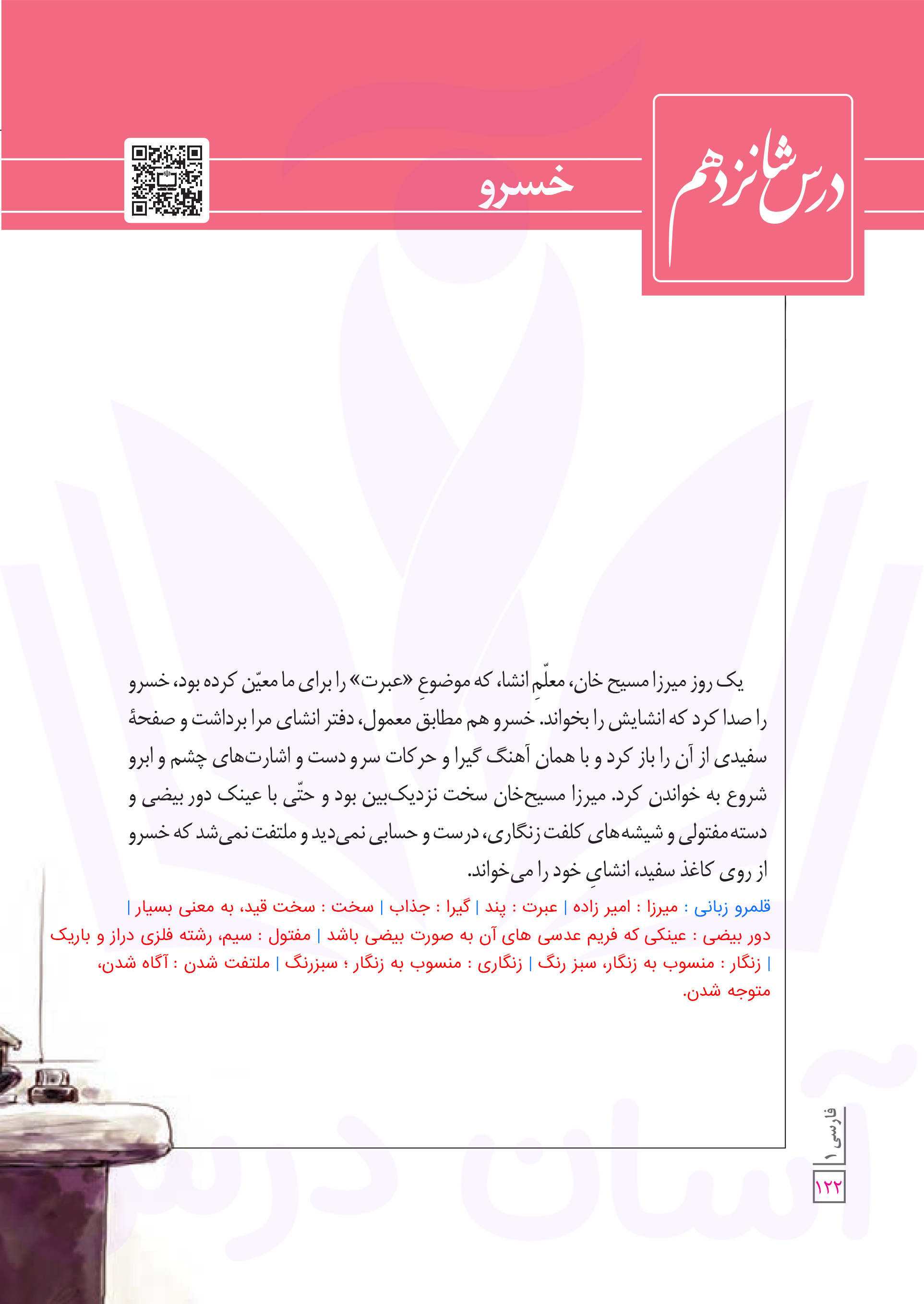 فارسی دهم : ادامه آرایه های درس شانزدهم (خسرو) صفحه ۱۲۲