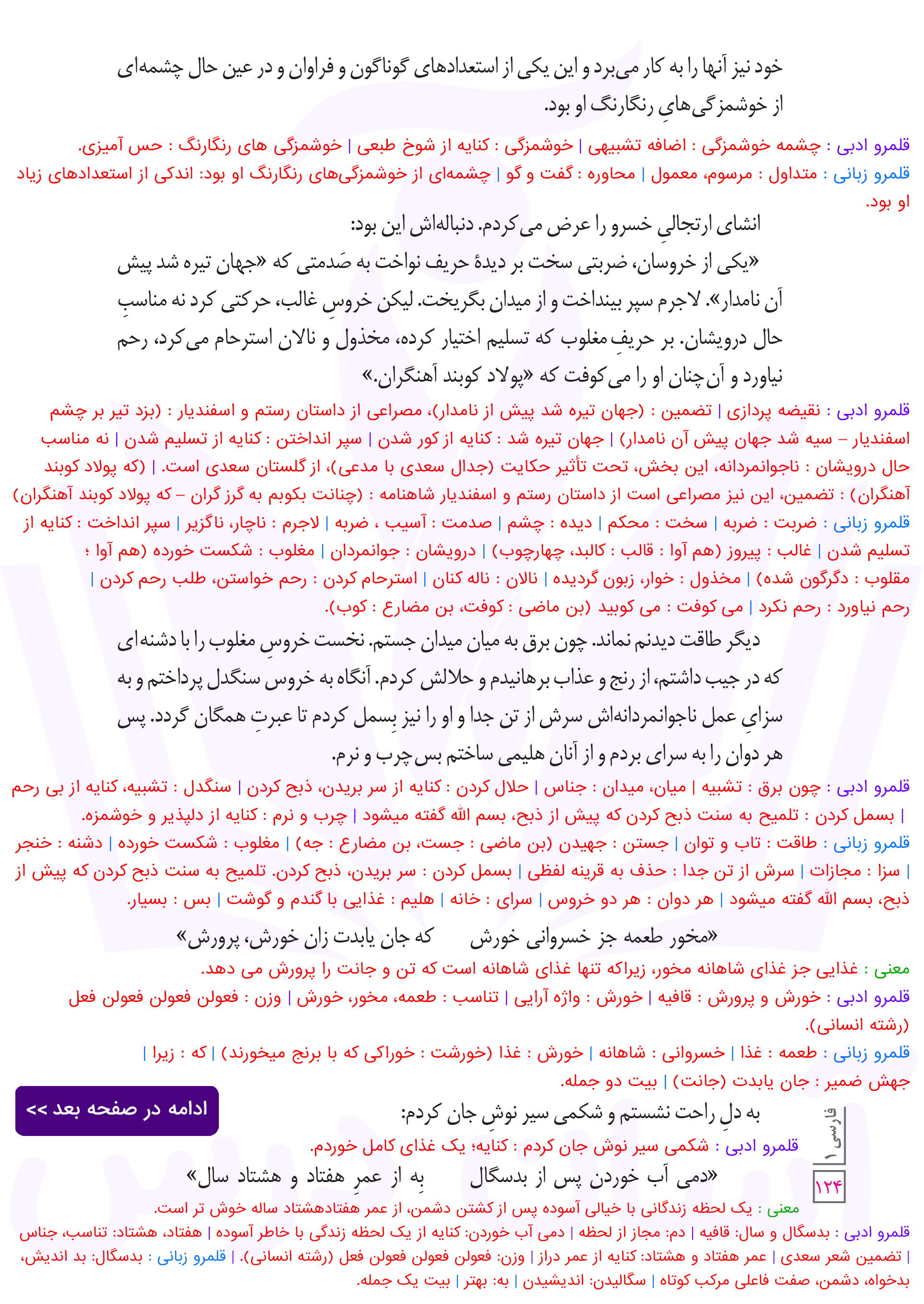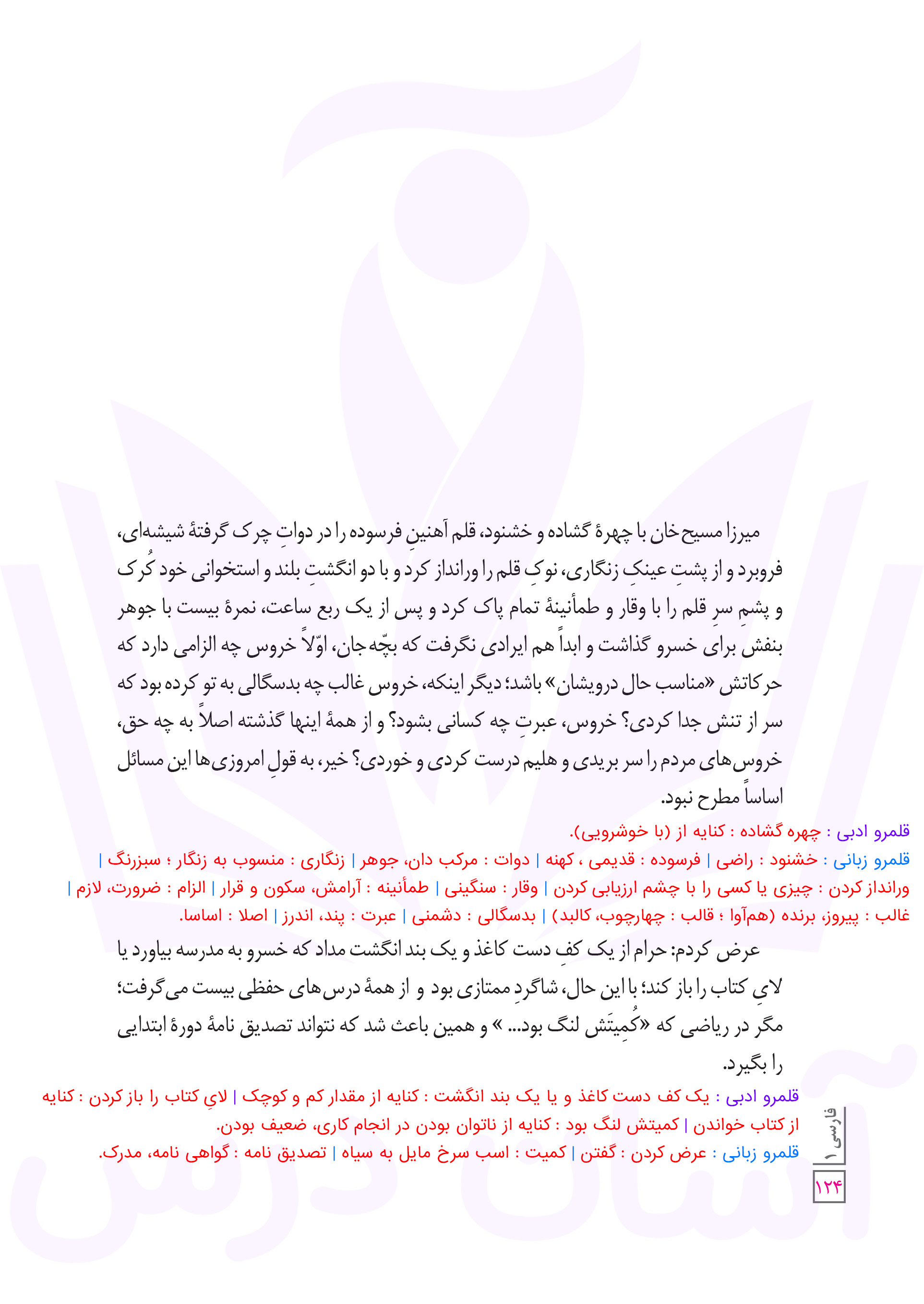 فارسی دهم : ادامه آرایه های درس شانزدهم (خسرو) صفحه ۱۲۴
