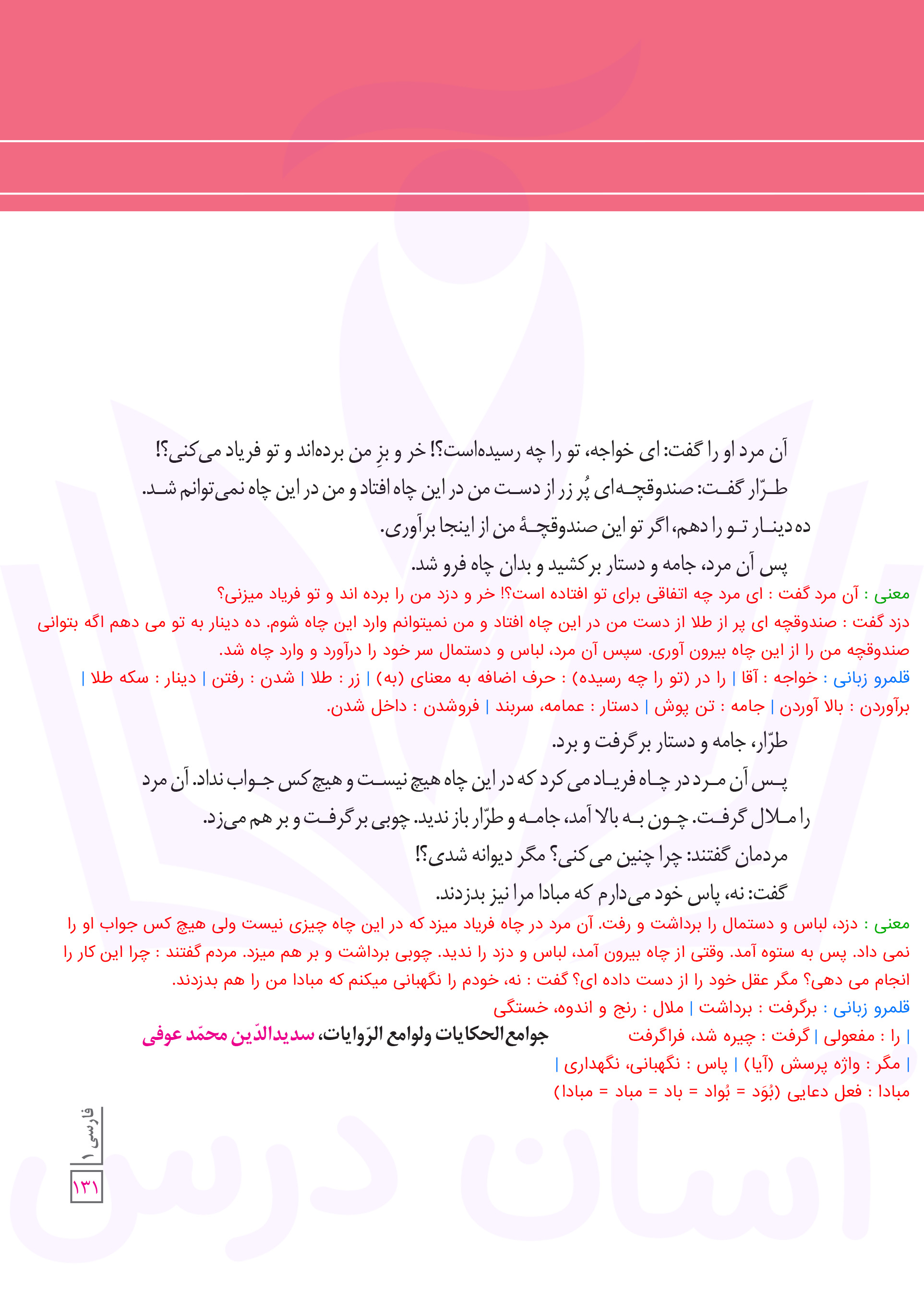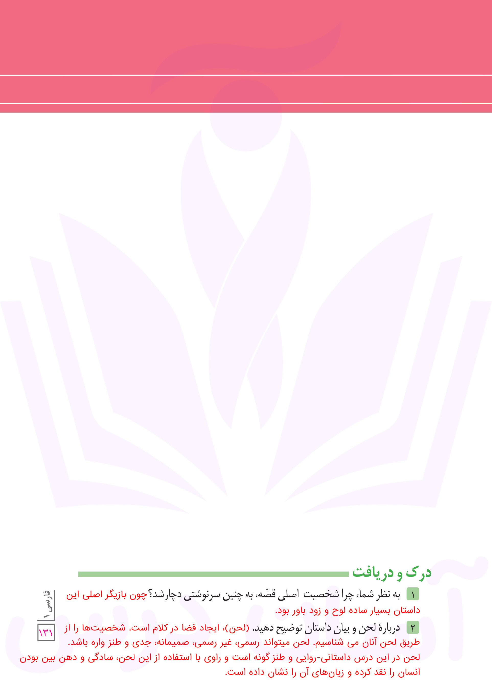 فارسی دهم : معنی روان خوانی و پاسخ درک و دریافت صفحه ۱۳۱