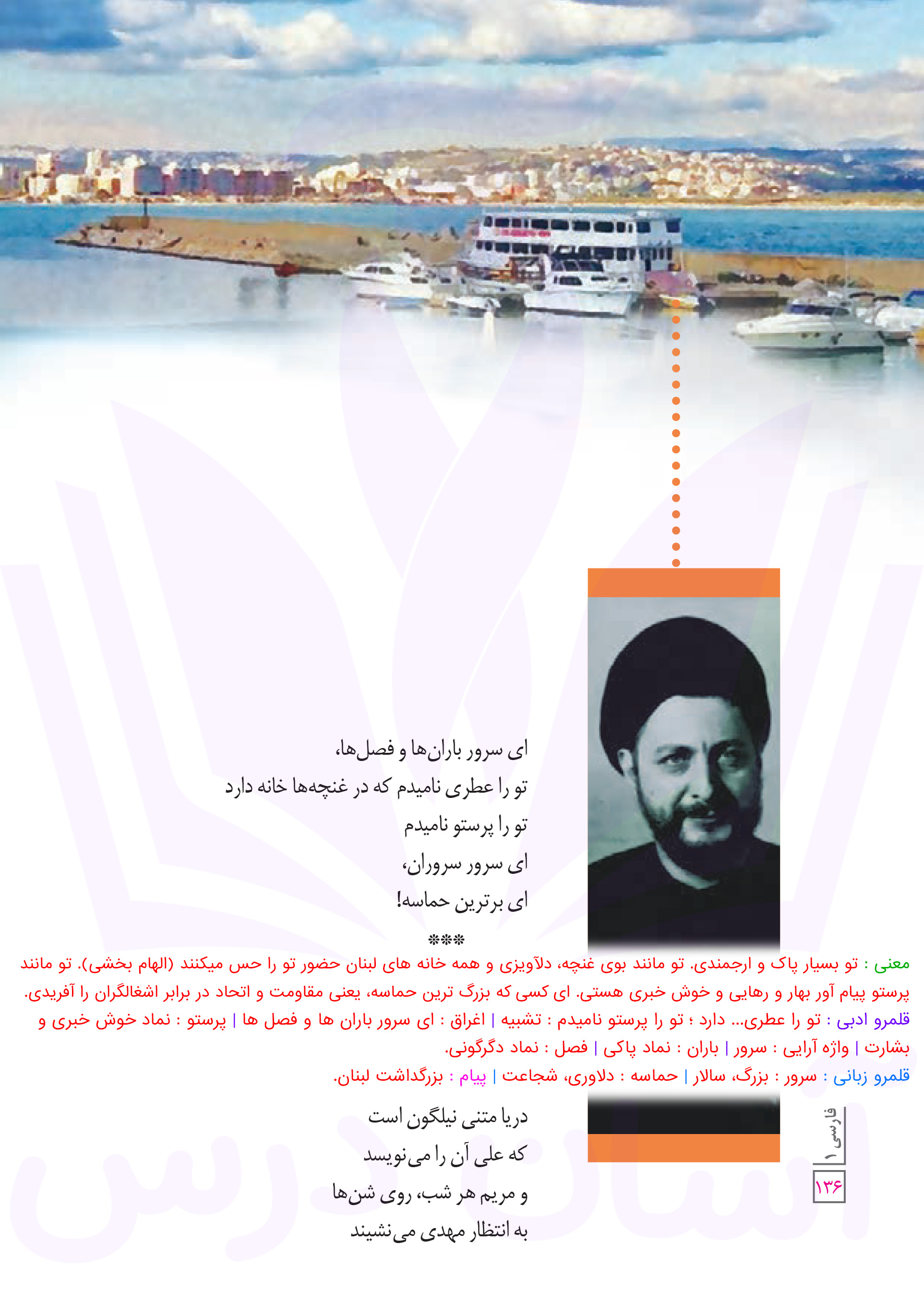 فارسی دهم : ادامه معنی درس هفدهم (سپیده دم) صفحه ۱۳۶