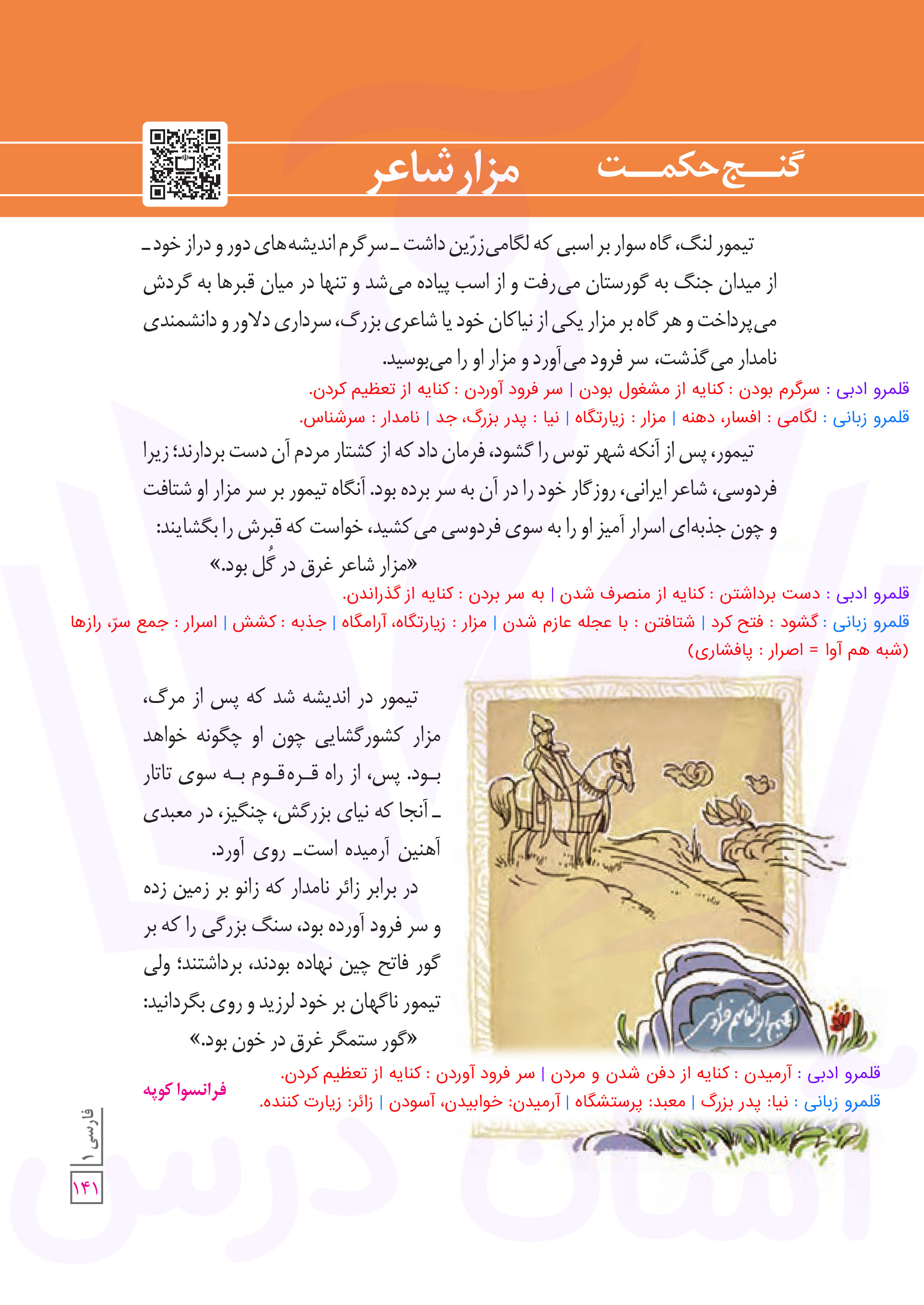 فارسی دهم : آرایه های گنج حکمت (مزار شاعر) صفحه ۱۴۱
