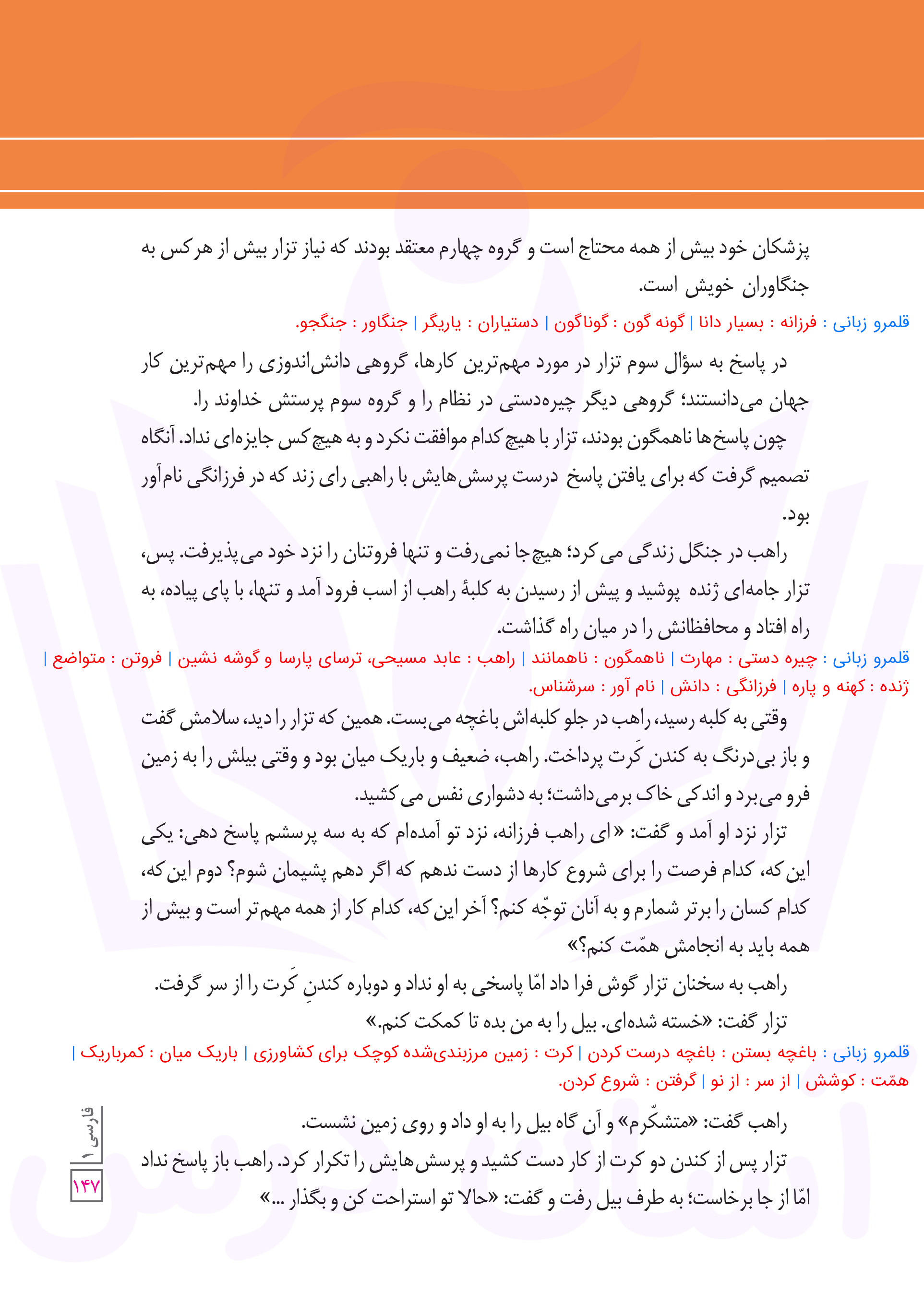 فارسی دهم : آرایه های روان خوانی (سه پرسش) صفحه ۱۴۷