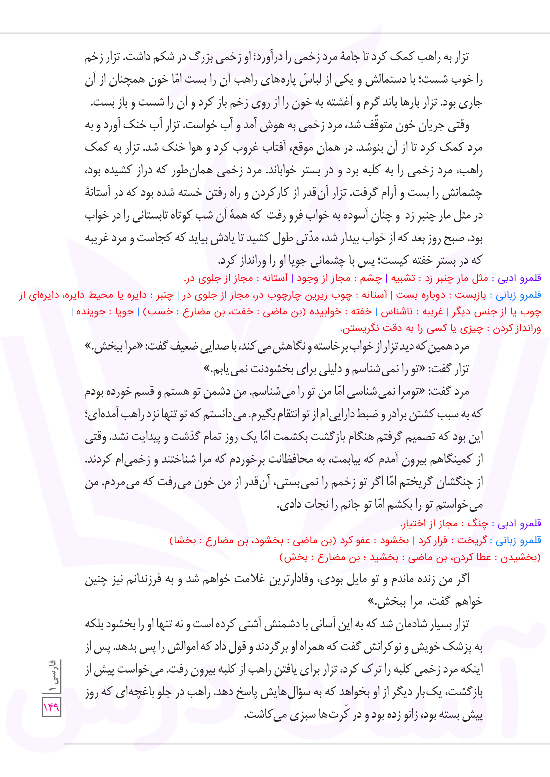 فارسی دهم : آرایه های روان خوانی (سه پرسش) صفحه ۱۴۹