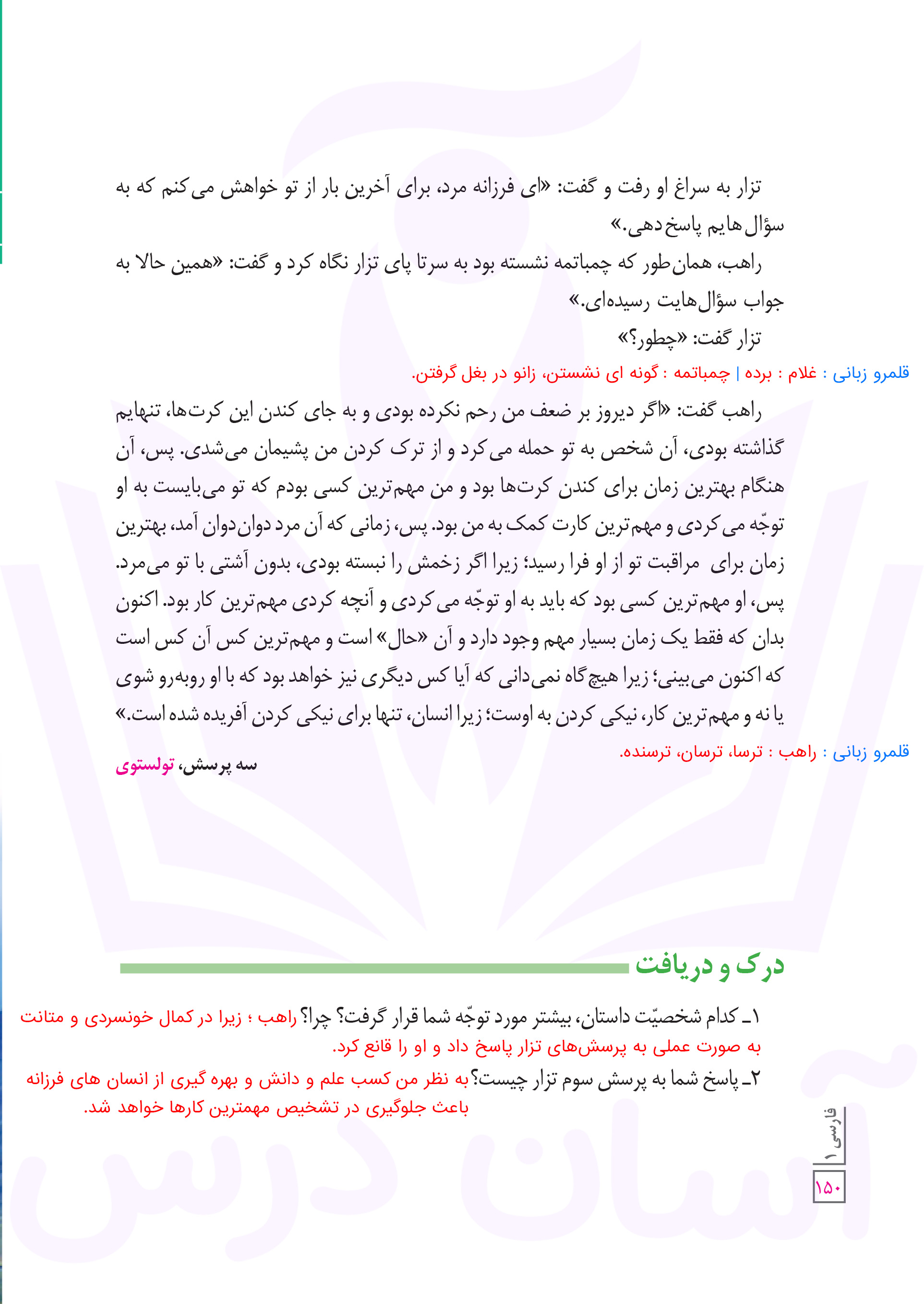 فارسی دهم : آرایه روان خوانی و پاسخ درک و دریافت صفحه ۱۵۰