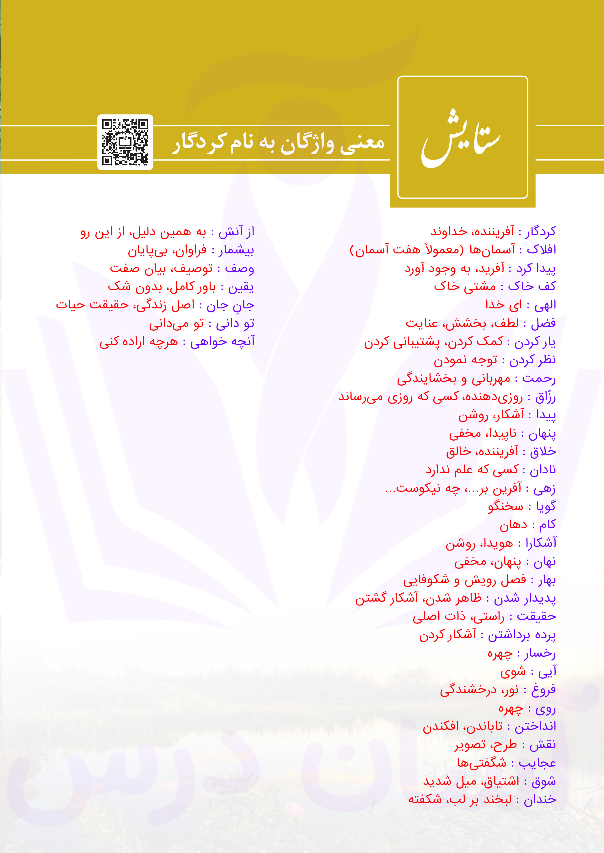 فارسی دهم : معنی واژگان ستایش (به نام کردگار)