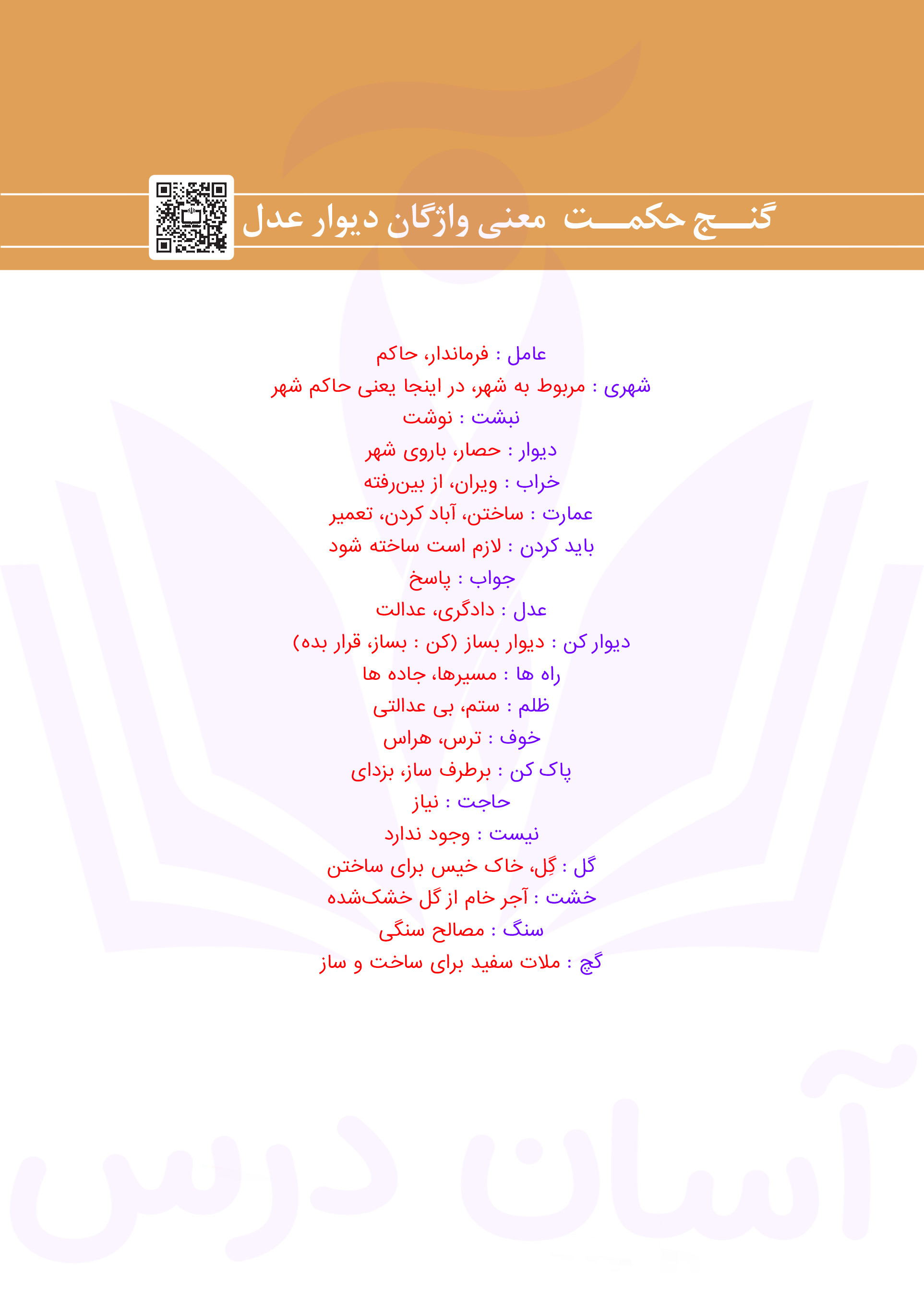 فارسی دهم : معنی واژگان گنج حکمت (دیوار عدل)