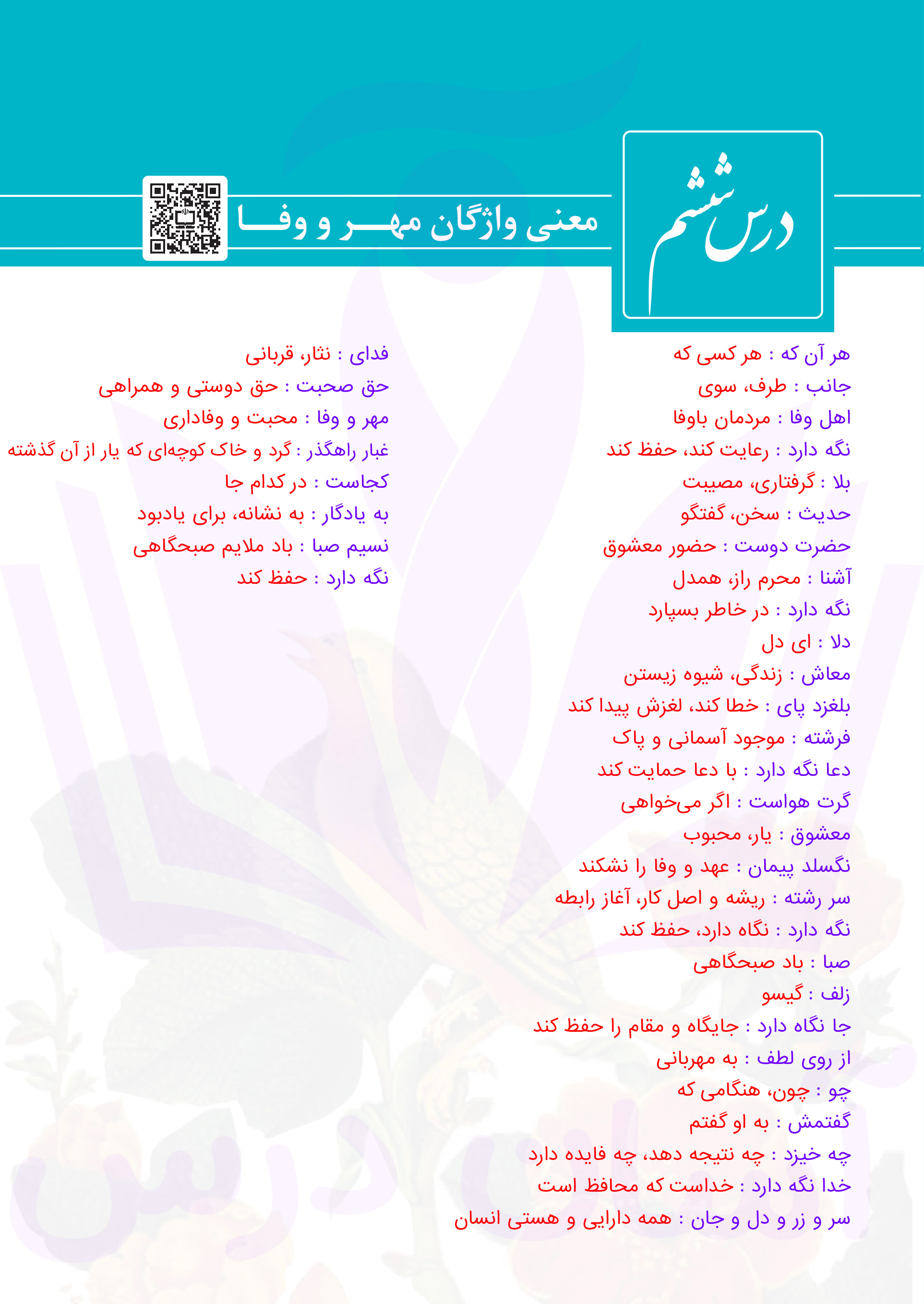 فارسی دهم : معنی واژگان درس ششم (مهر و وفا)