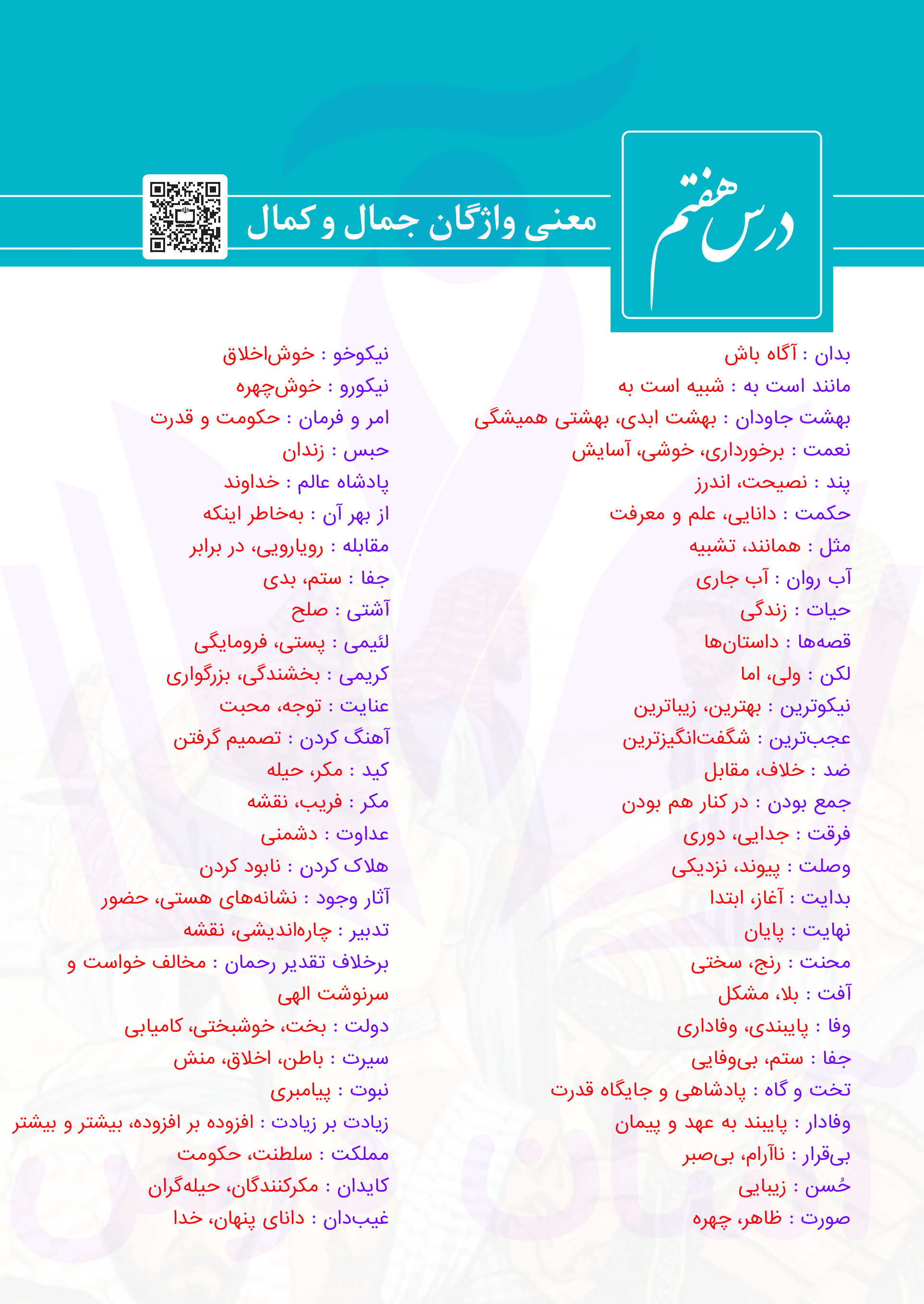 فارسی دهم : معنی واژگان درس هفتم (جمال و کمال)