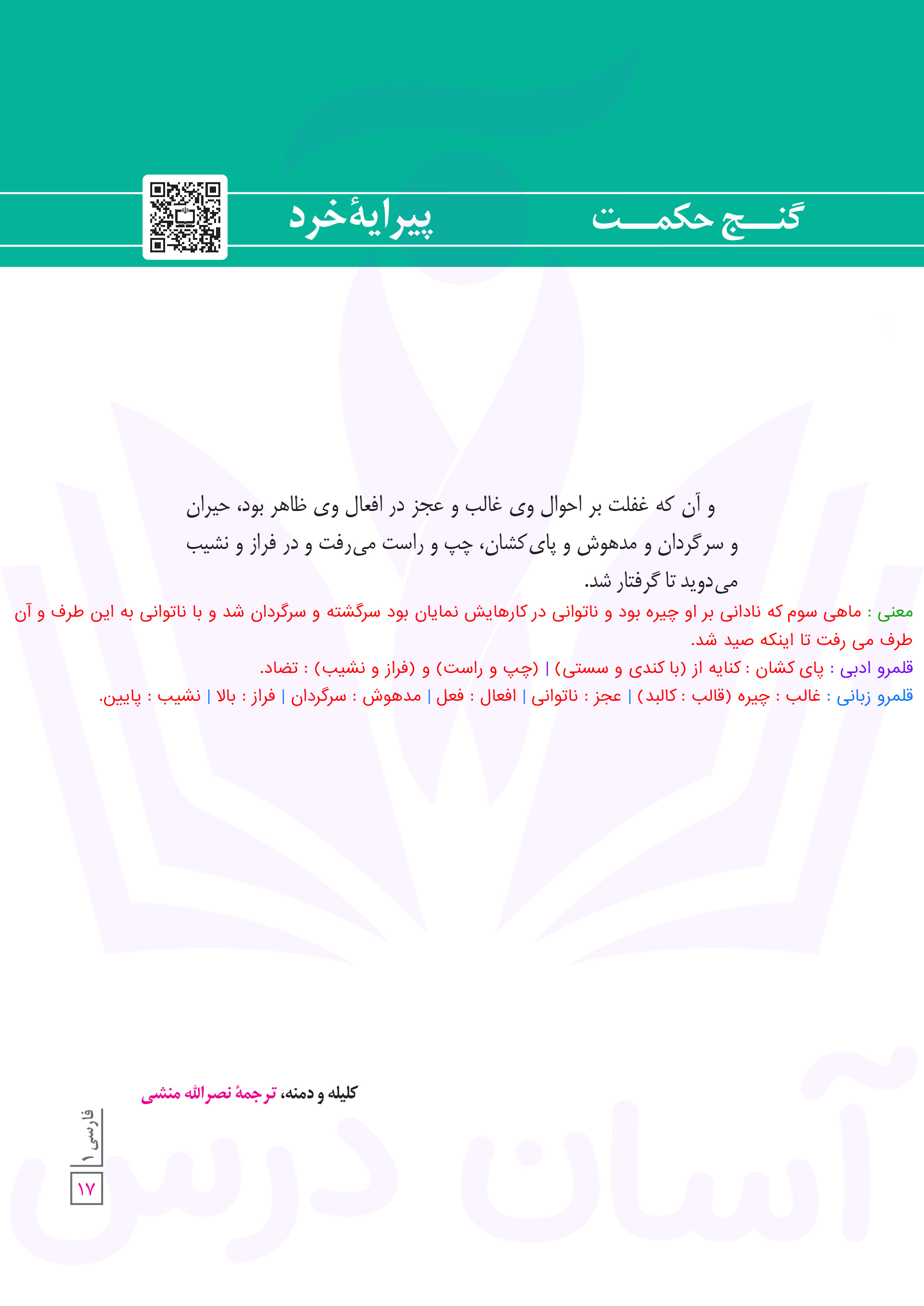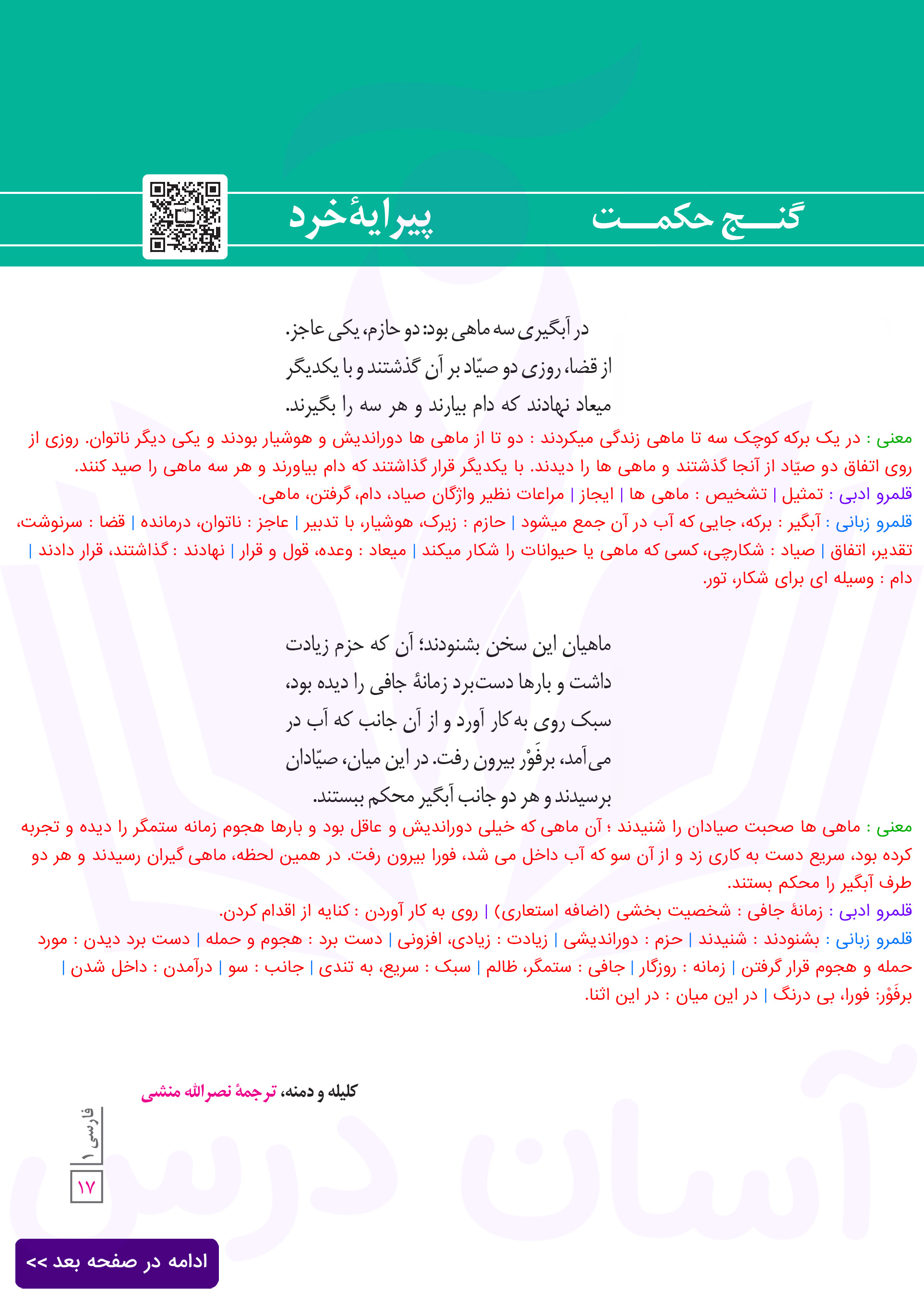فارسی دهم : معنی گنج حکمت (پیرایه خرد) صفحه ۱۷