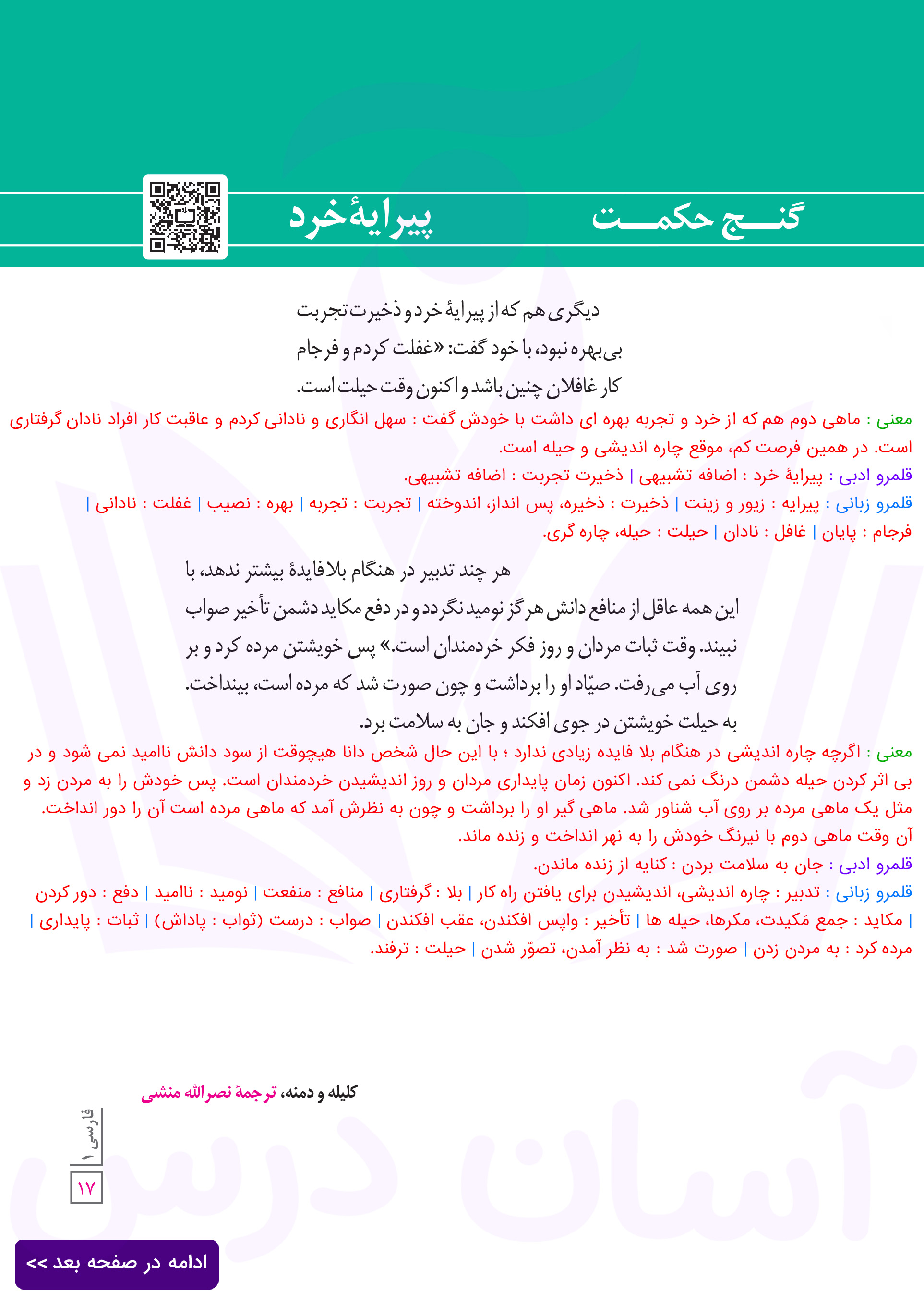 فارسی دهم : ادامه معنی گنج حکمت (پیرایه خرد) صفحه ۱۷