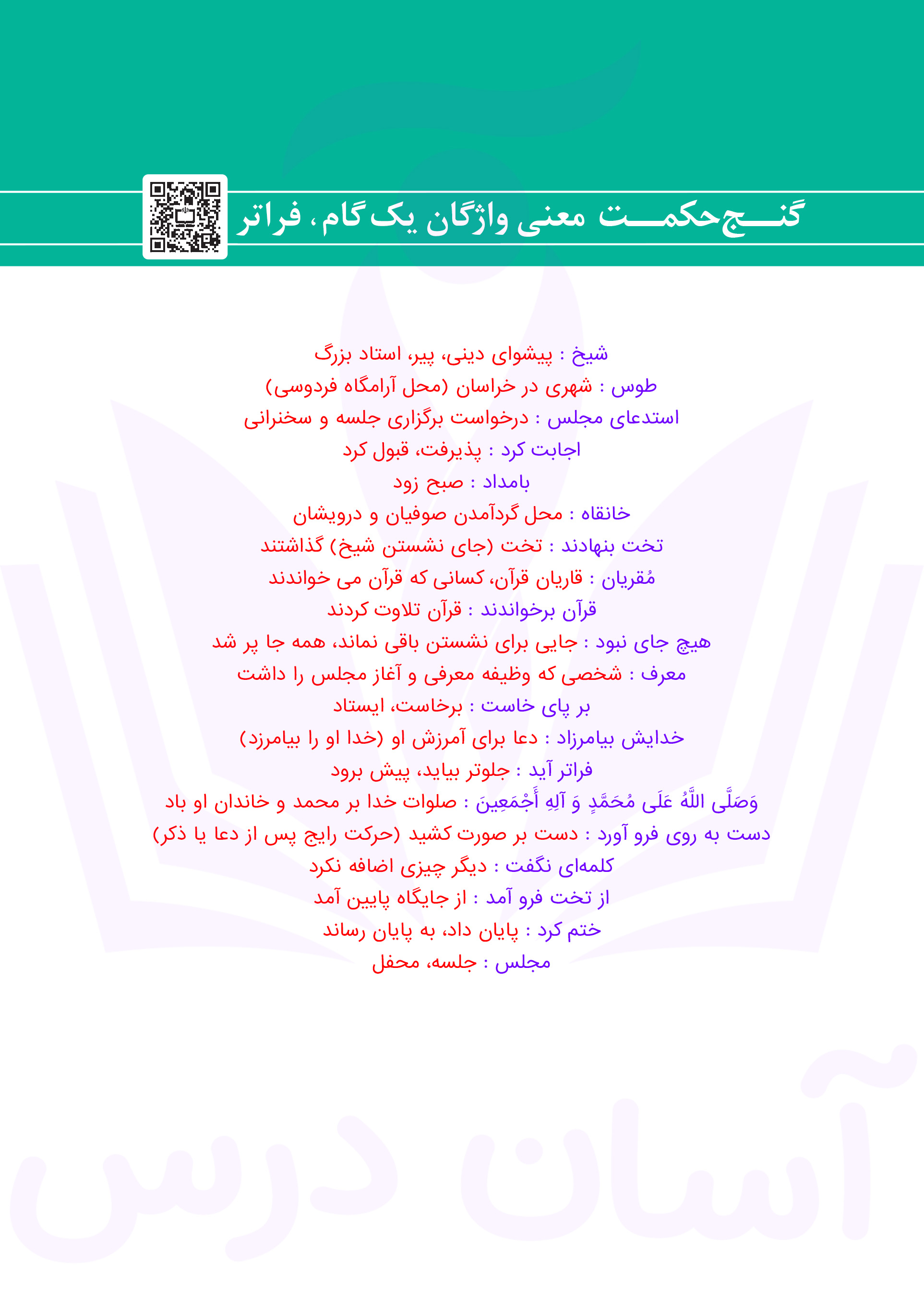 فارسی دهم : معنی واژگان گنج حکمت (یک گام، فراتر)
