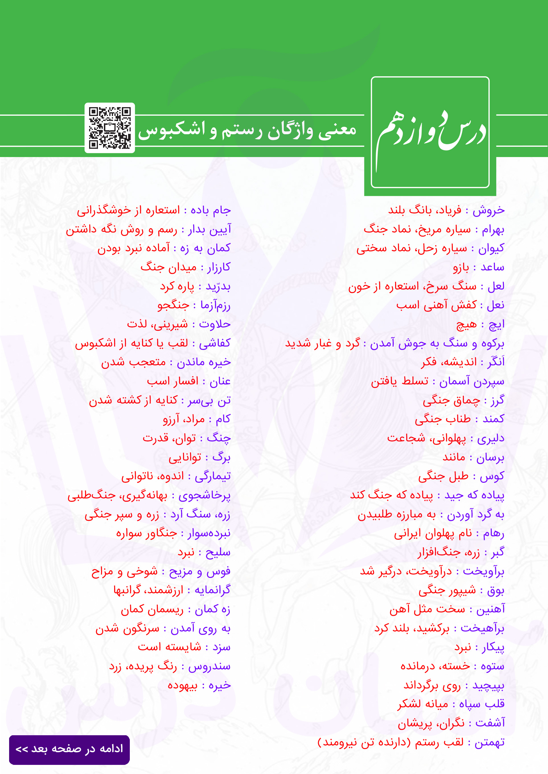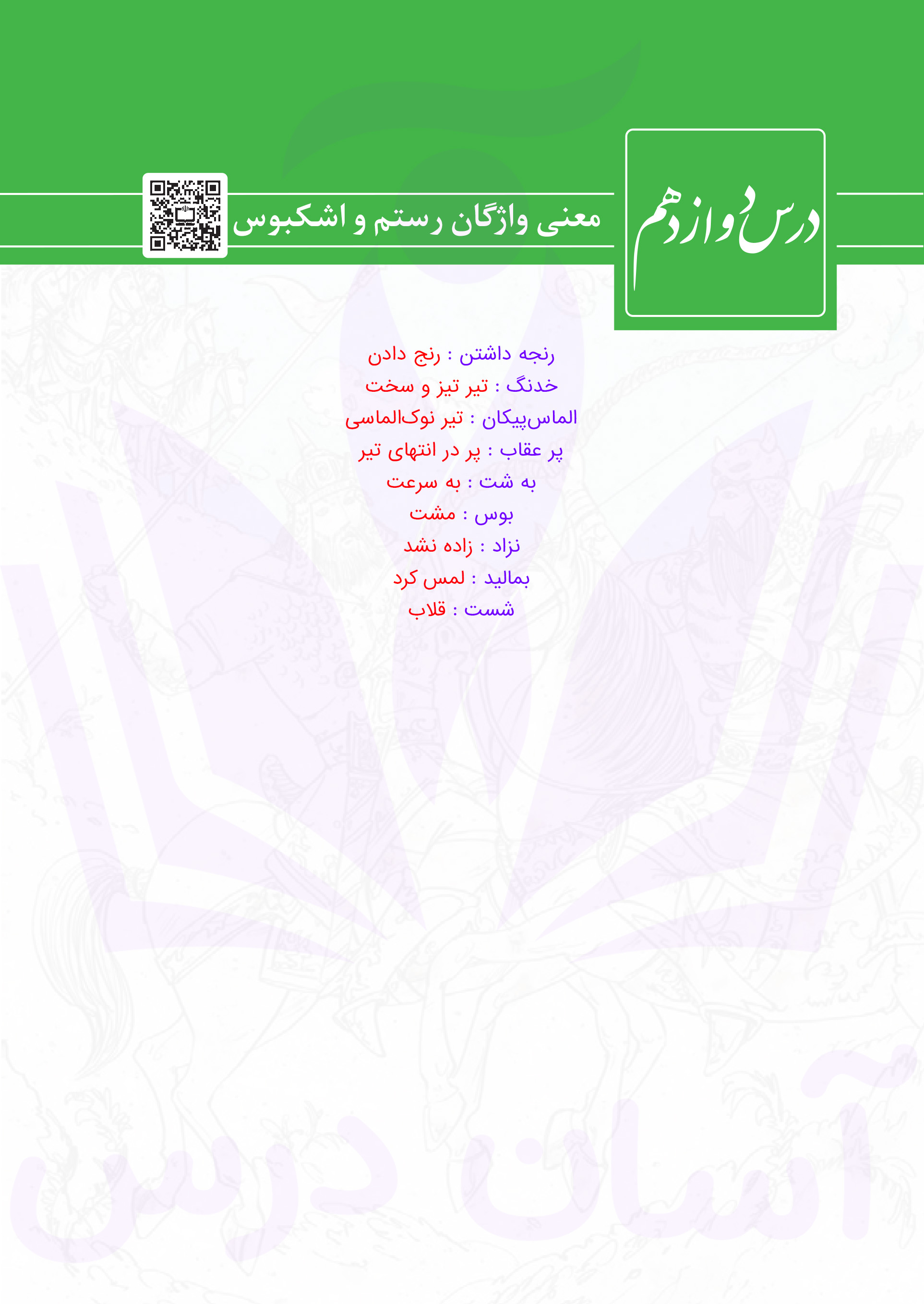 فارسی دهم : ادامه معنی واژگان درس دوازدهم (رستم و اشکبوس)