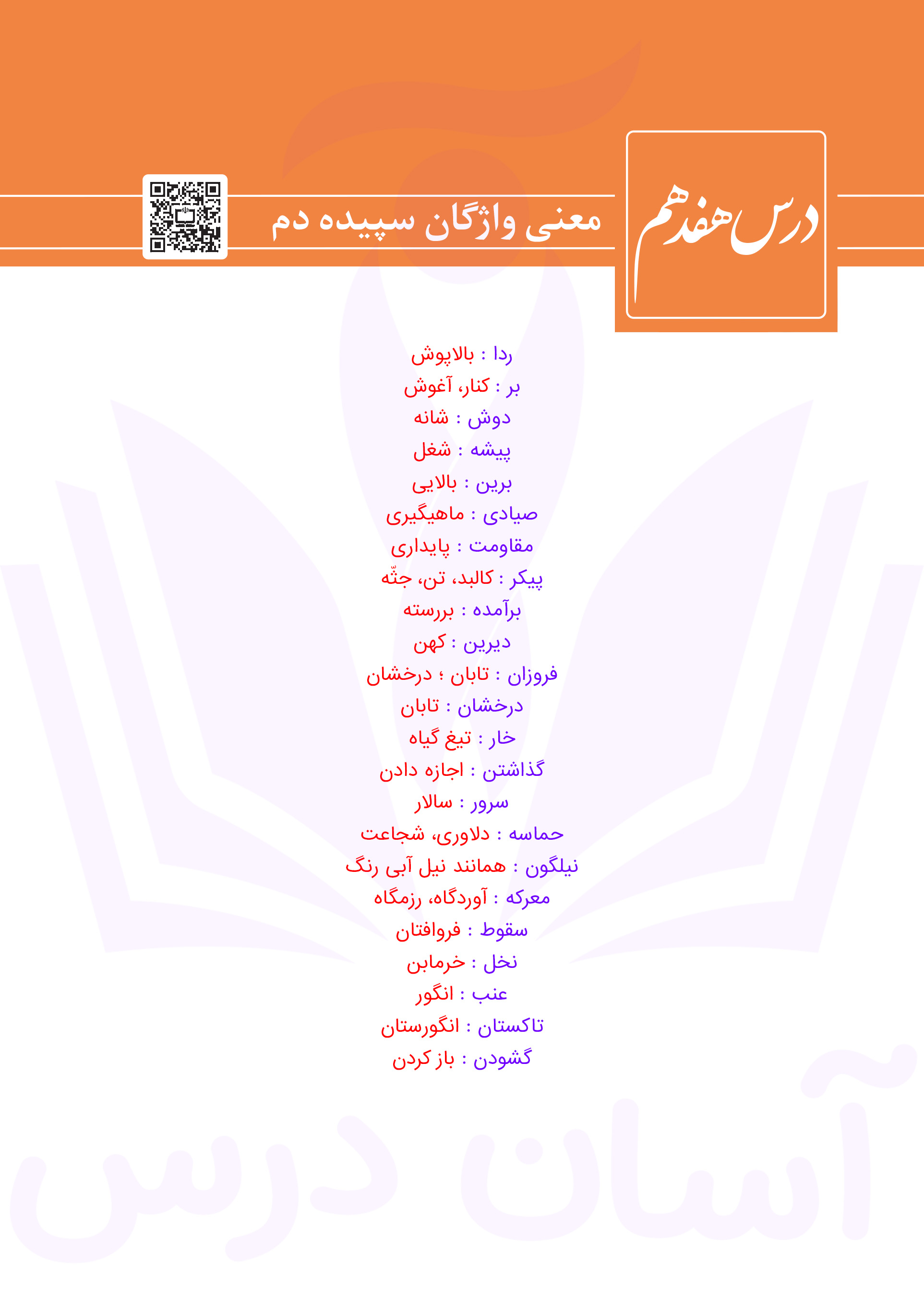 فارسی دهم : معنی واژگان درس هفدهم (سپیده دم)