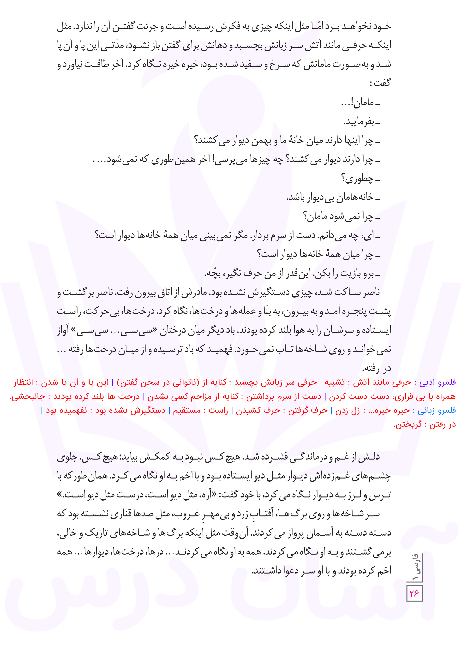 فارسی دهم : آرایه های روان خوانی (دیوار) صفحه ۲۶