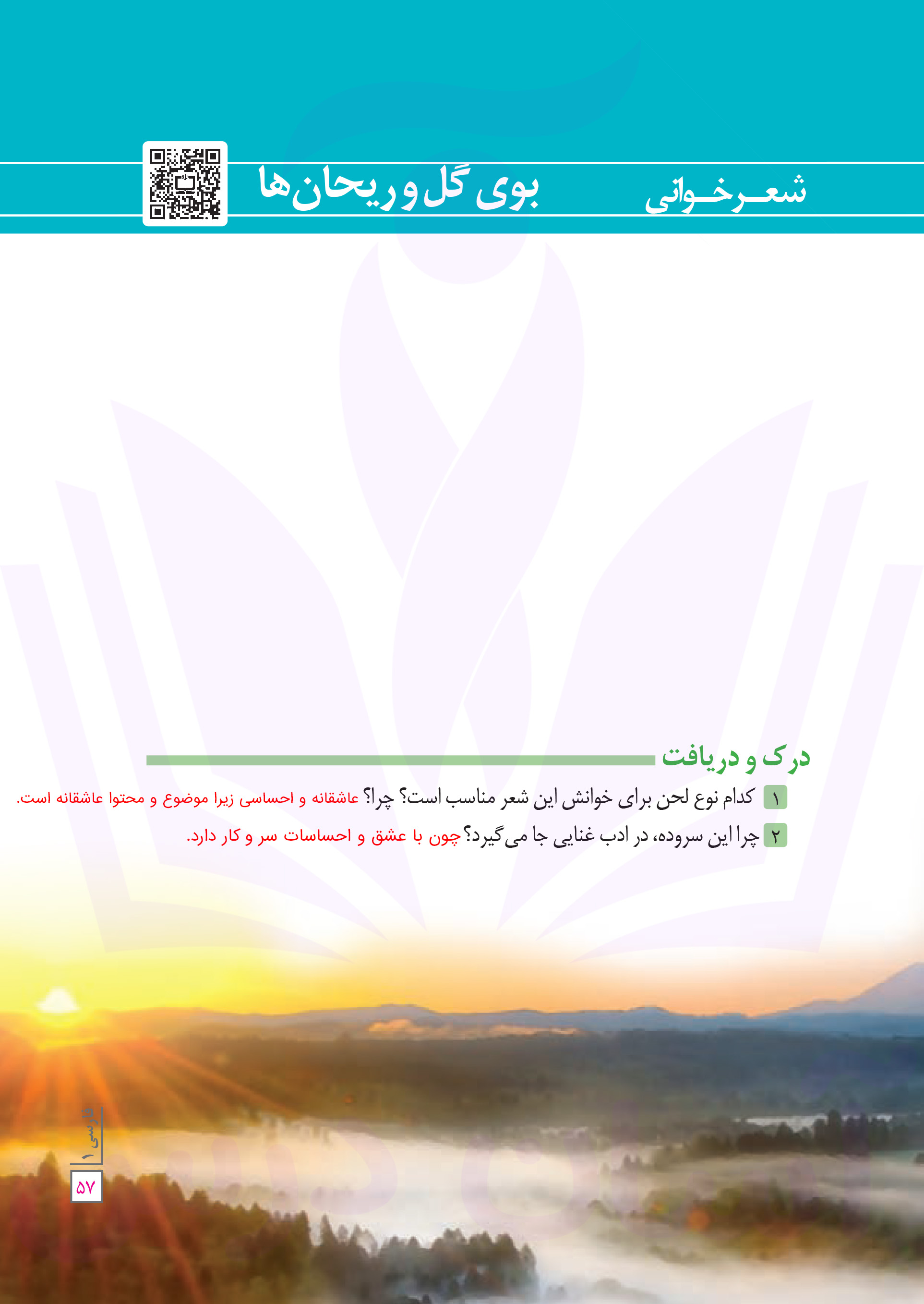 فارسی دهم : معنی شعرخوانی و پاسخ درک و دریافت صفحه ۵۷