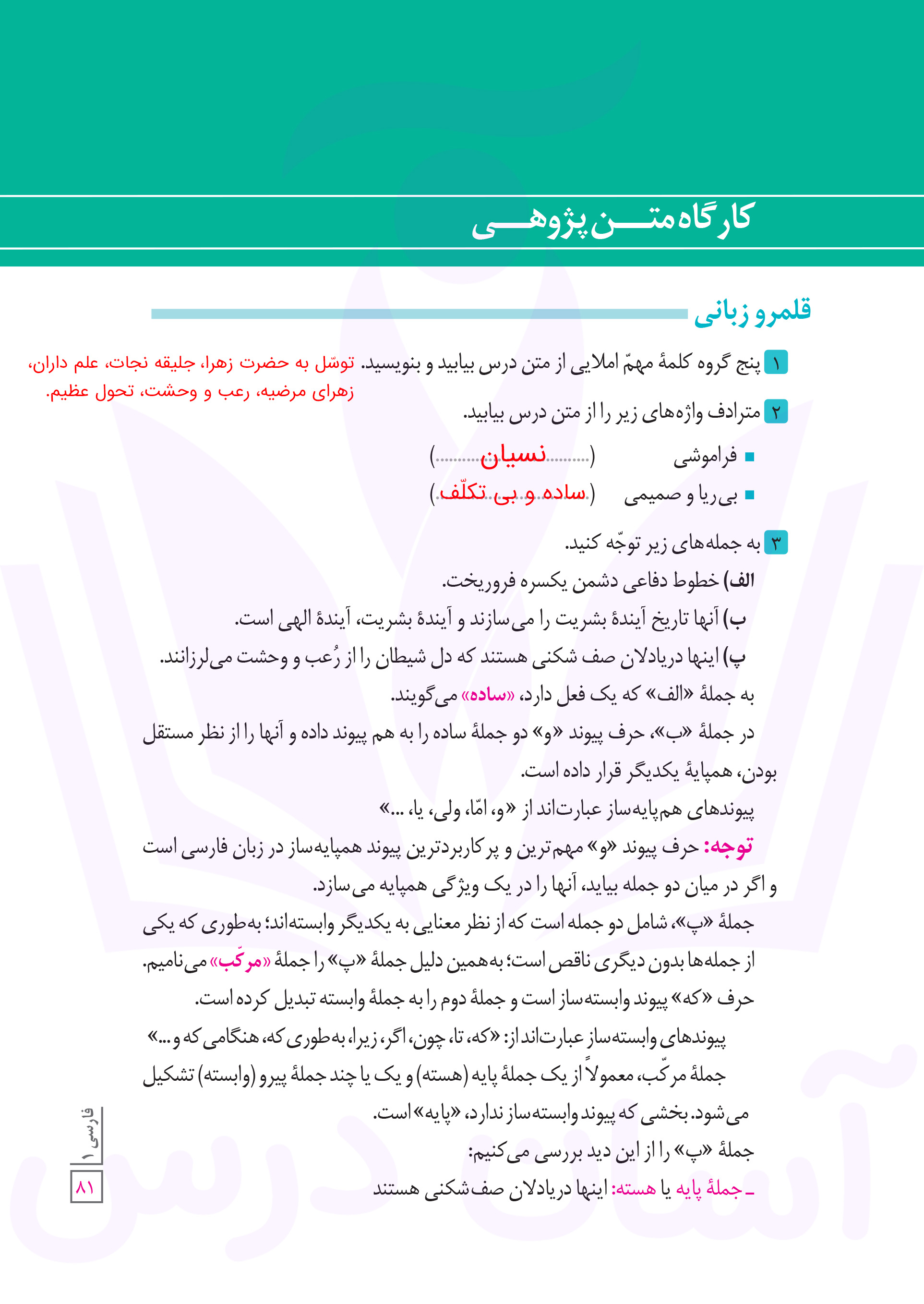 فارسی دهم : پاسخ قلمرو زبانی صفحه ۸۱