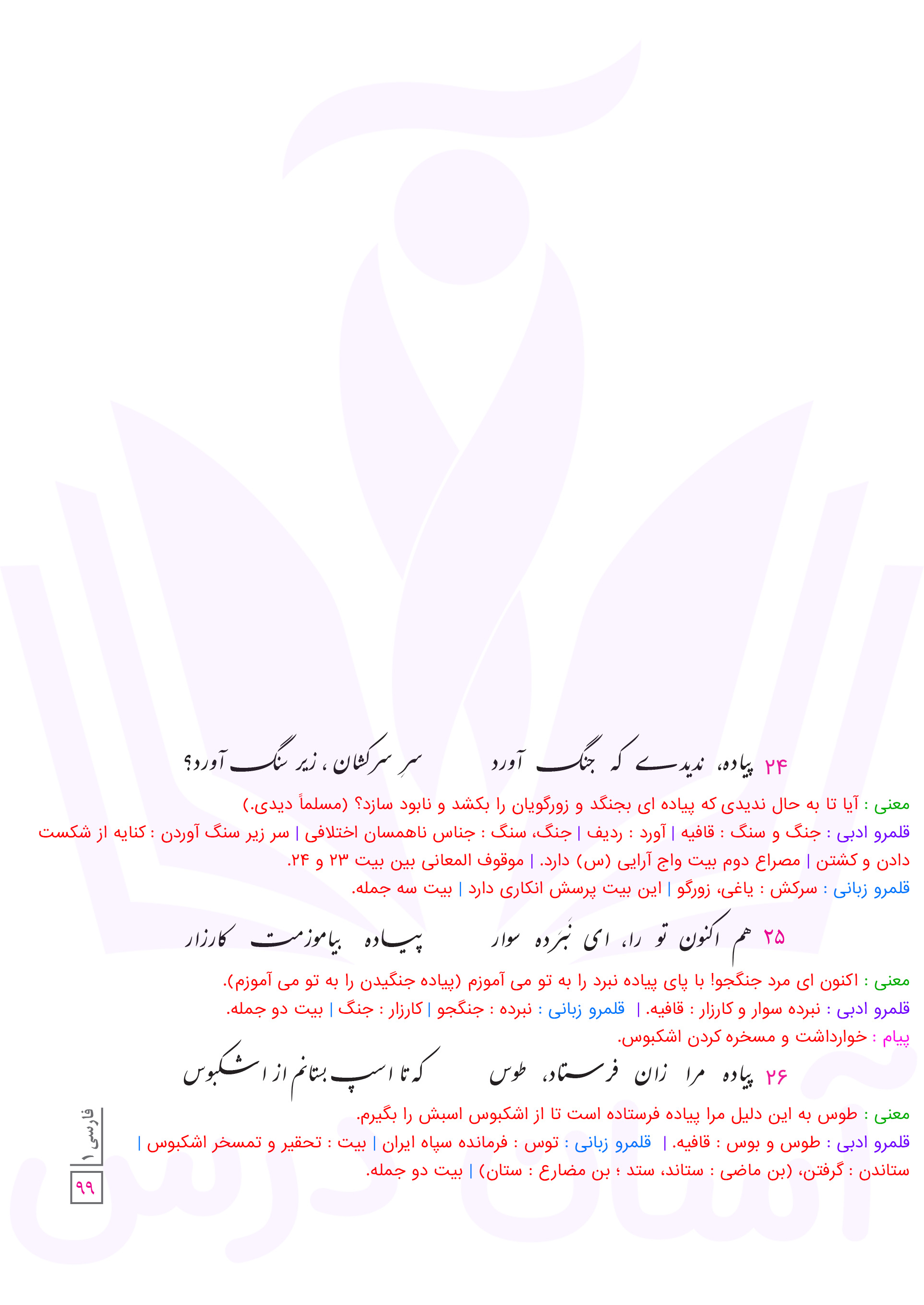 فارسی دهم : معنی درس دوازدهم (رستم و اشکبوس) صفحه ۹۹