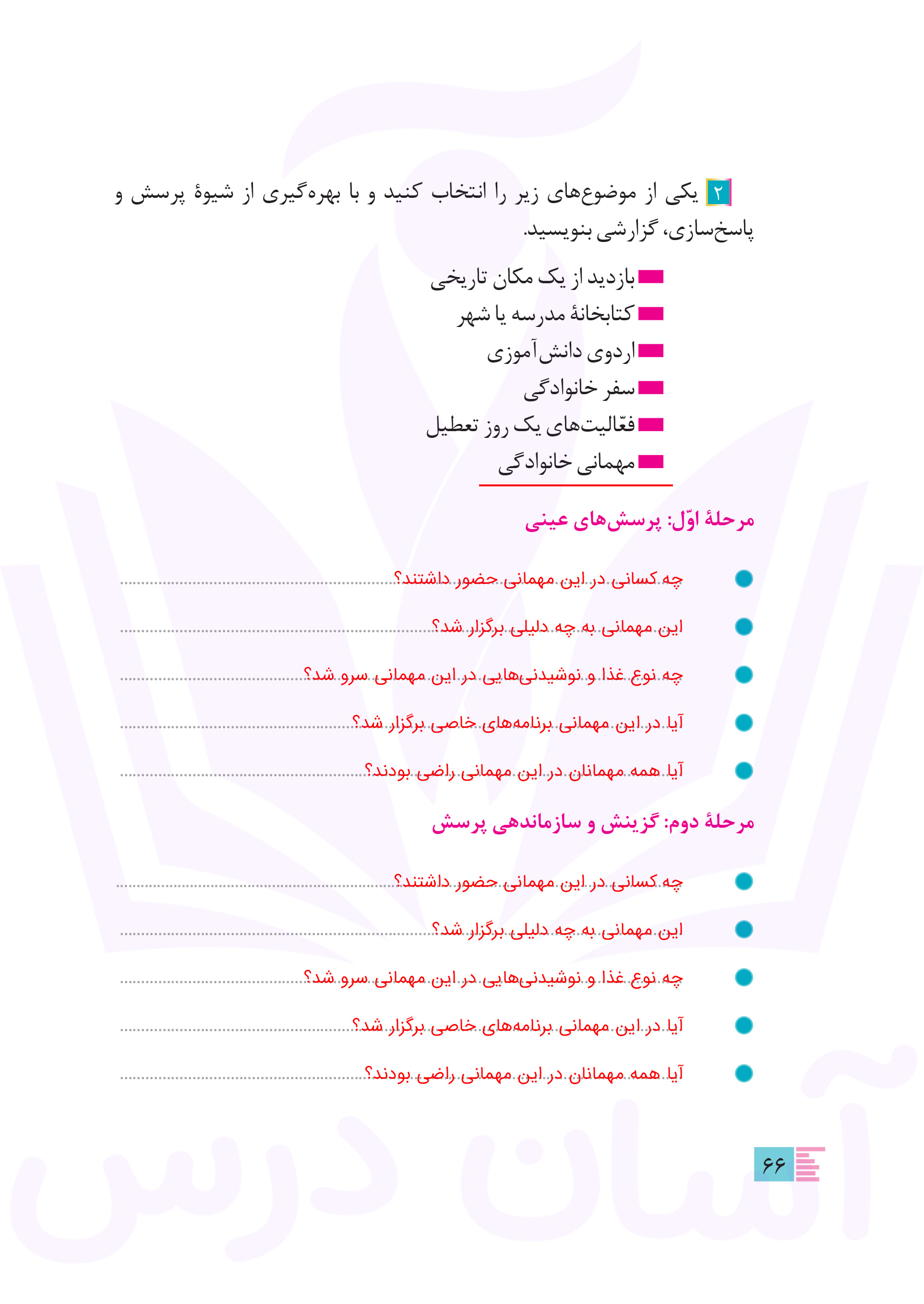 نگارش دهم : پاسخ سوالات صفحه ۶۶