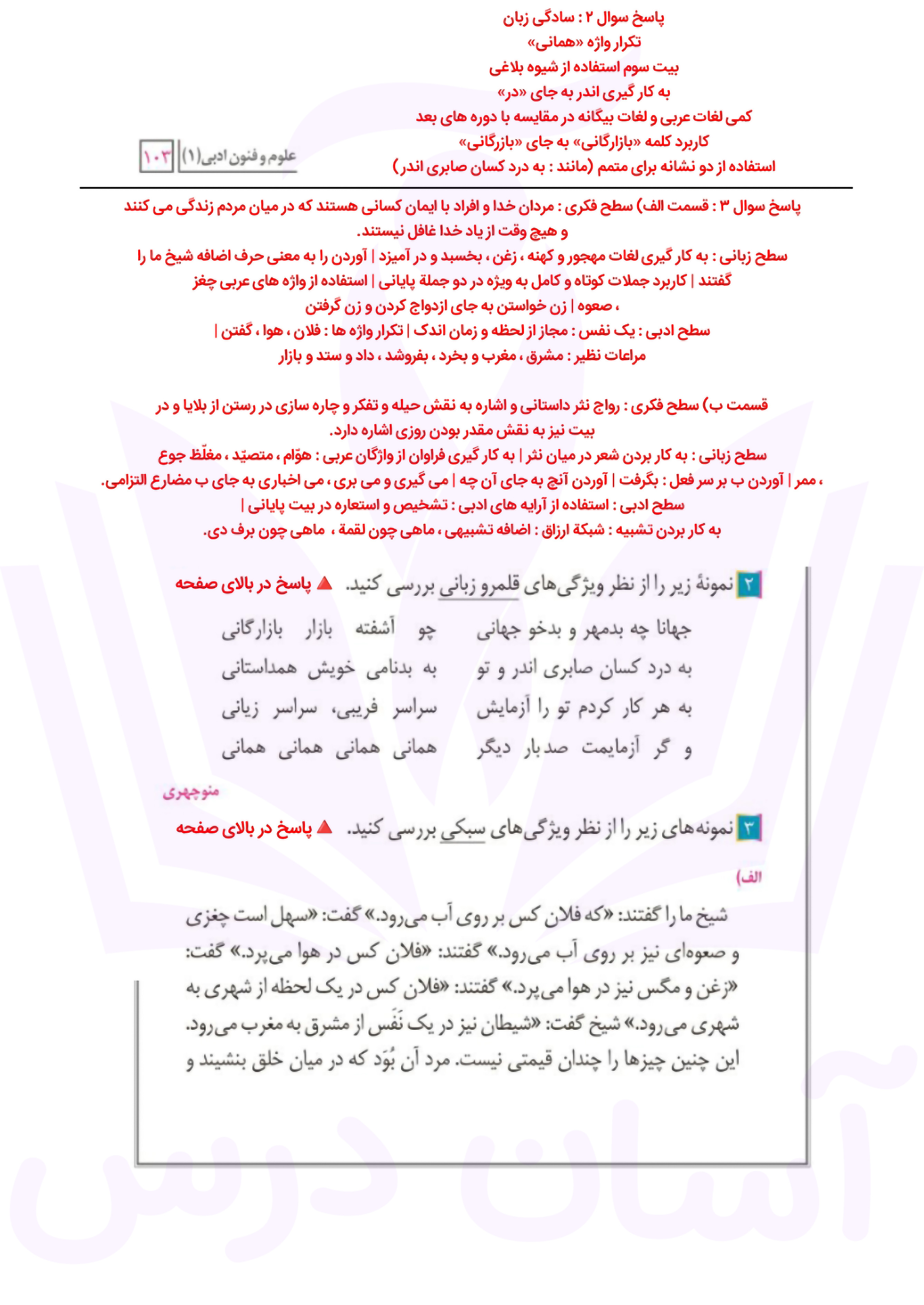 علوم و فنون دهم : ادامه پاسخ گارگاه تحلیل فصل چهارم صفحه ۱۰۳