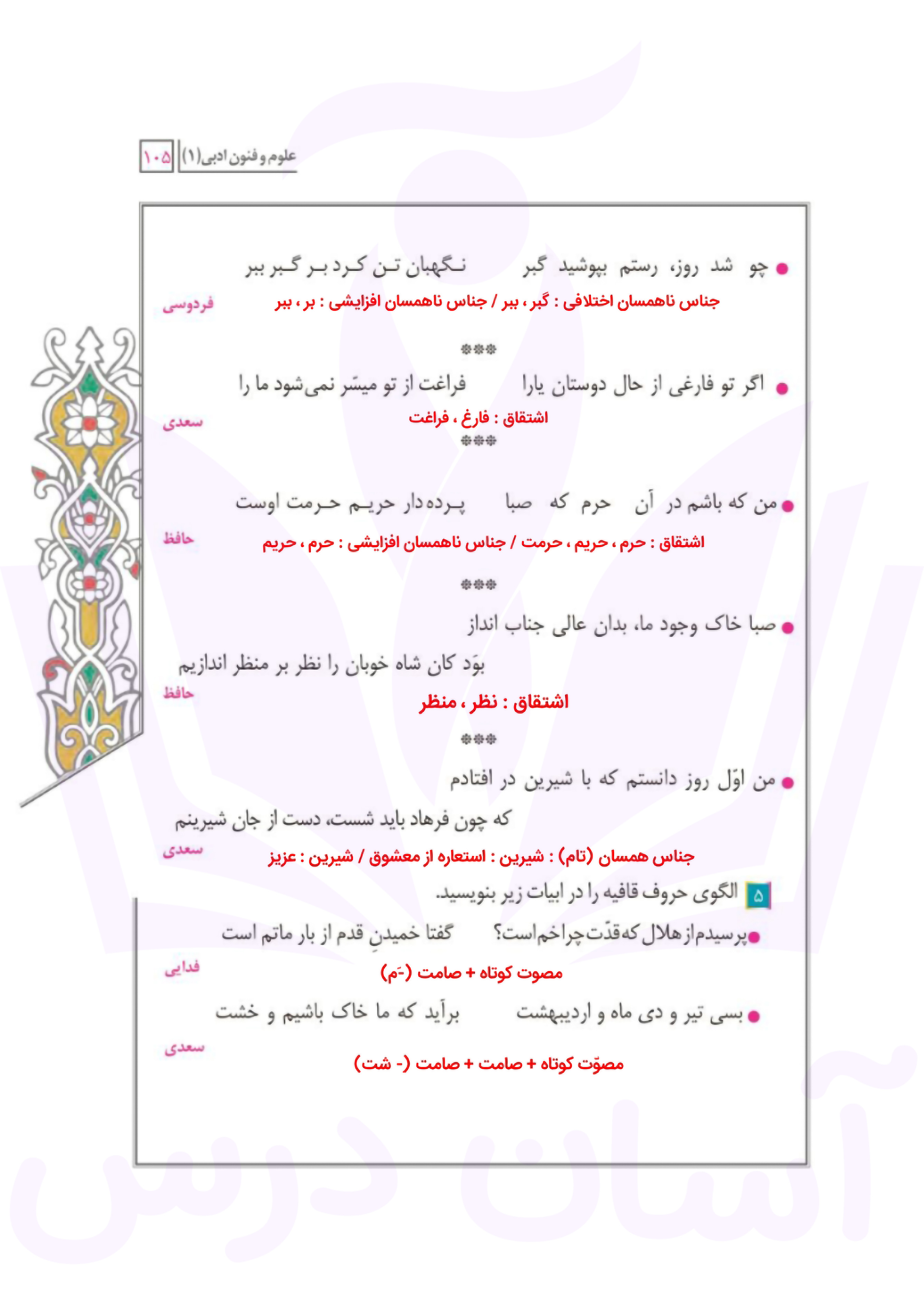 علوم و فنون دهم : پاسخ گارگاه تحلیل فصل چهارم صفحه ۱۰۵