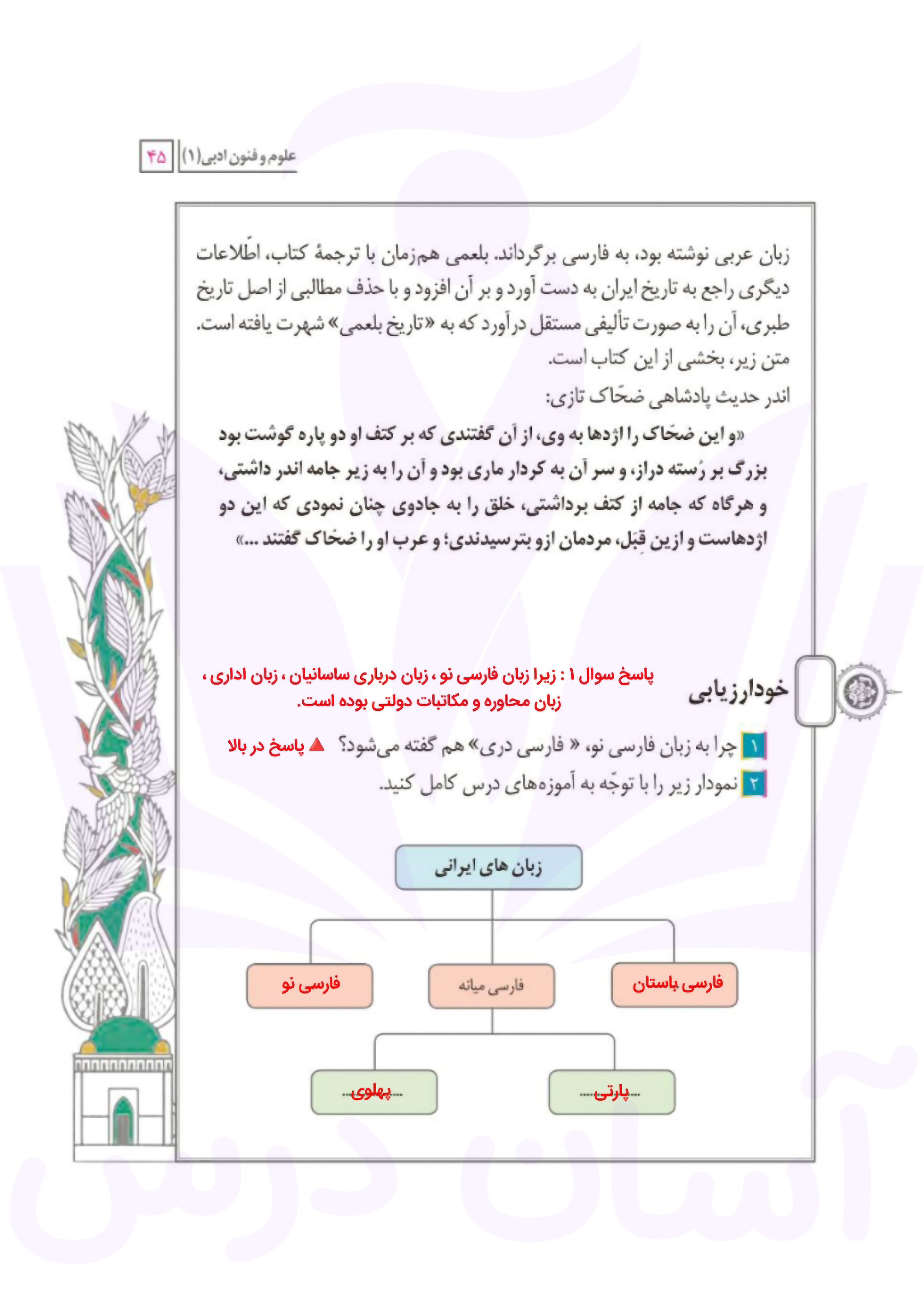 علوم و فنون دهم : پاسخ خودارزیابی صفحه ۴۵