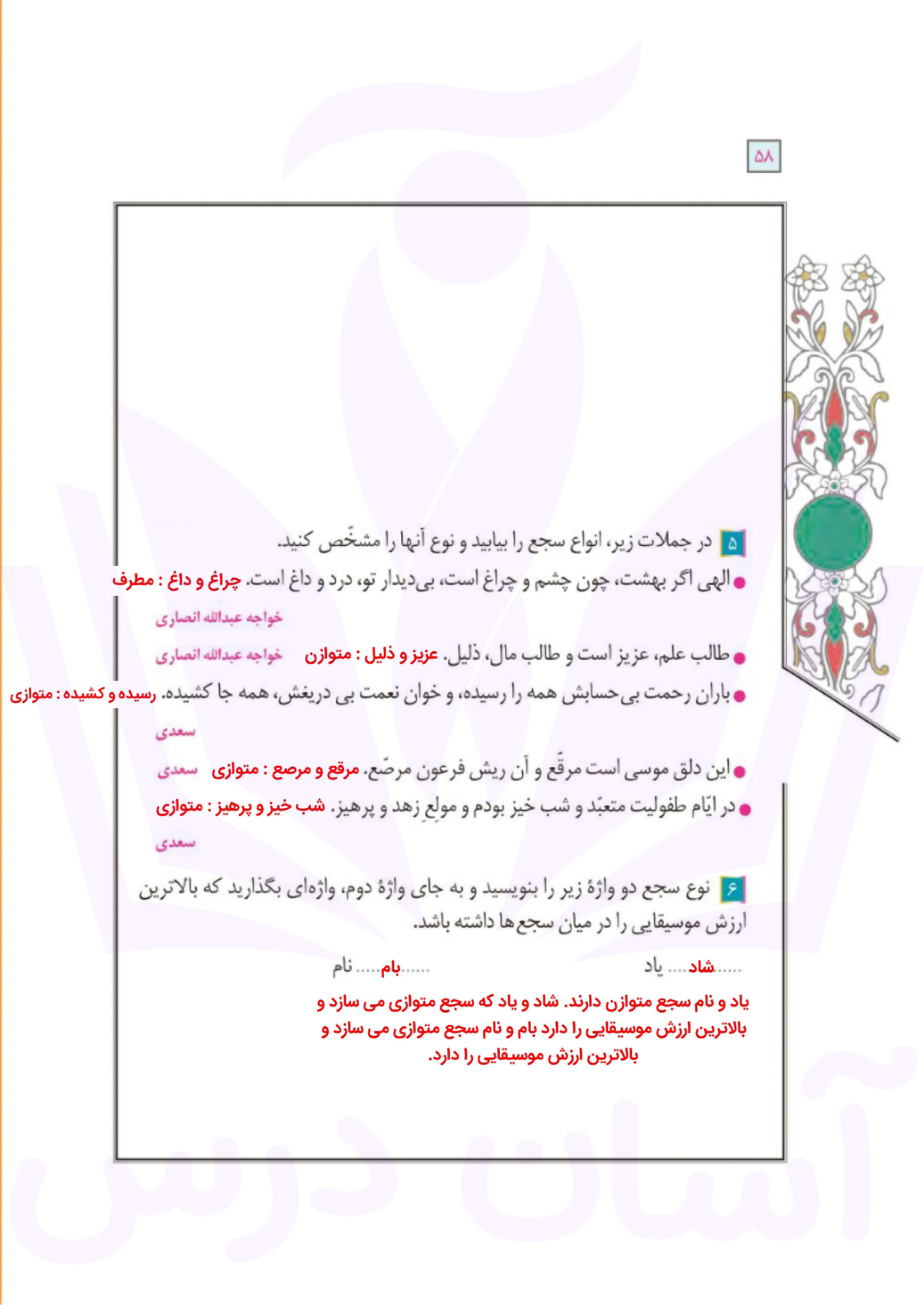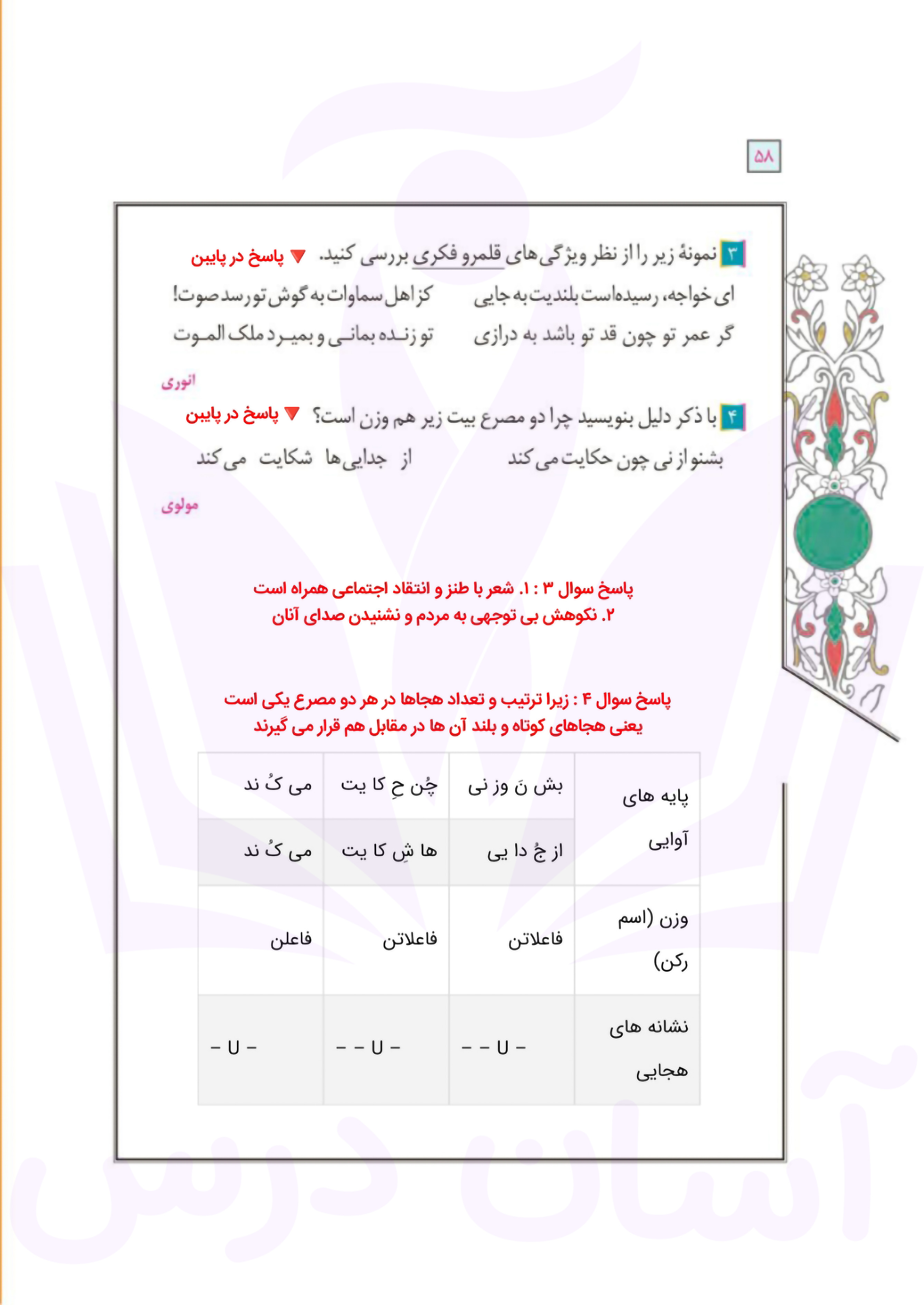 علوم و فنون دهم : پاسخ گارگاه تحلیل فصل دوم صفحه ۵۸
