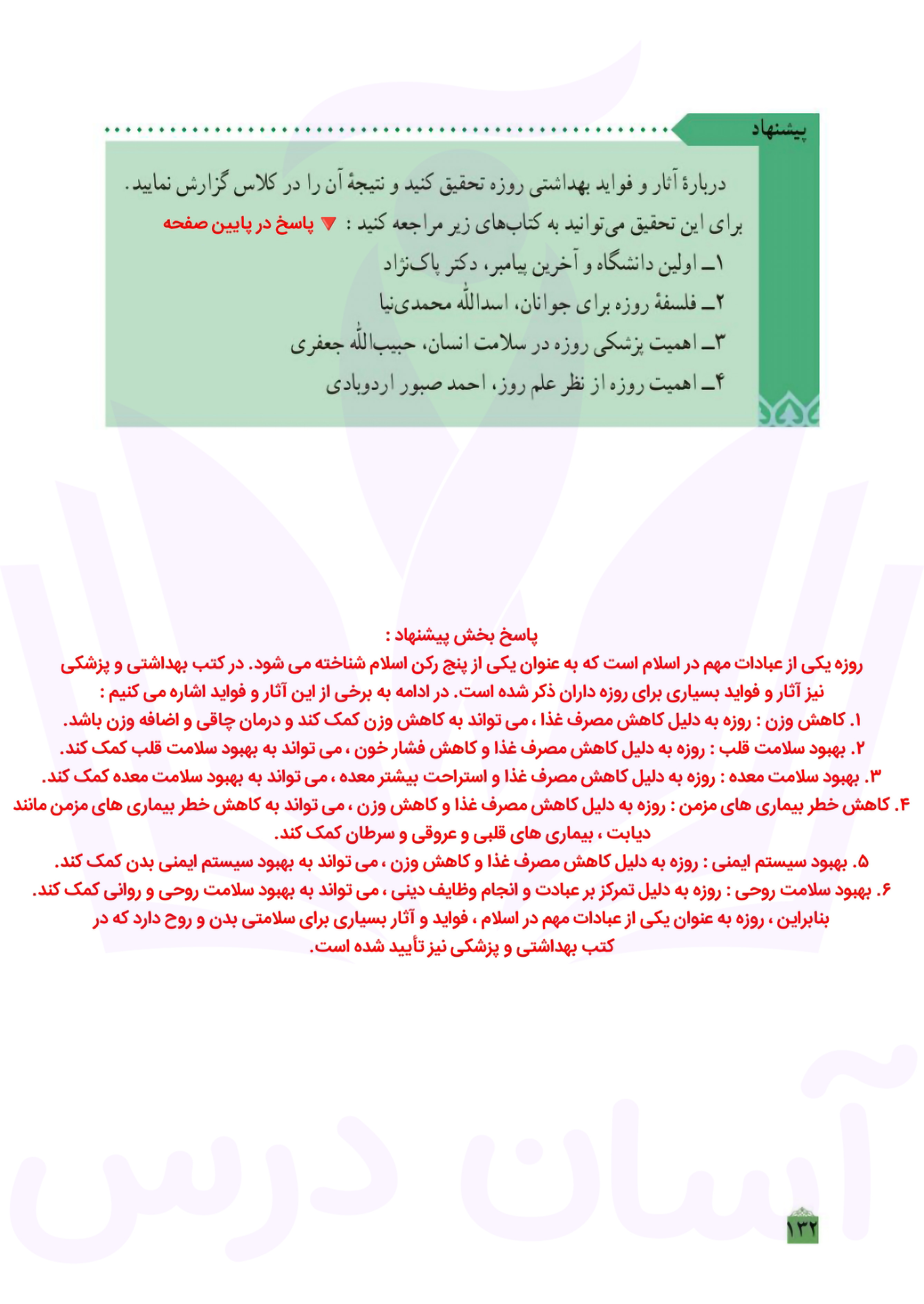 دینی دهم : پاسخ پیشنهاد صفحه ۱۳۲ (ریاضی – تجربی – فنی)