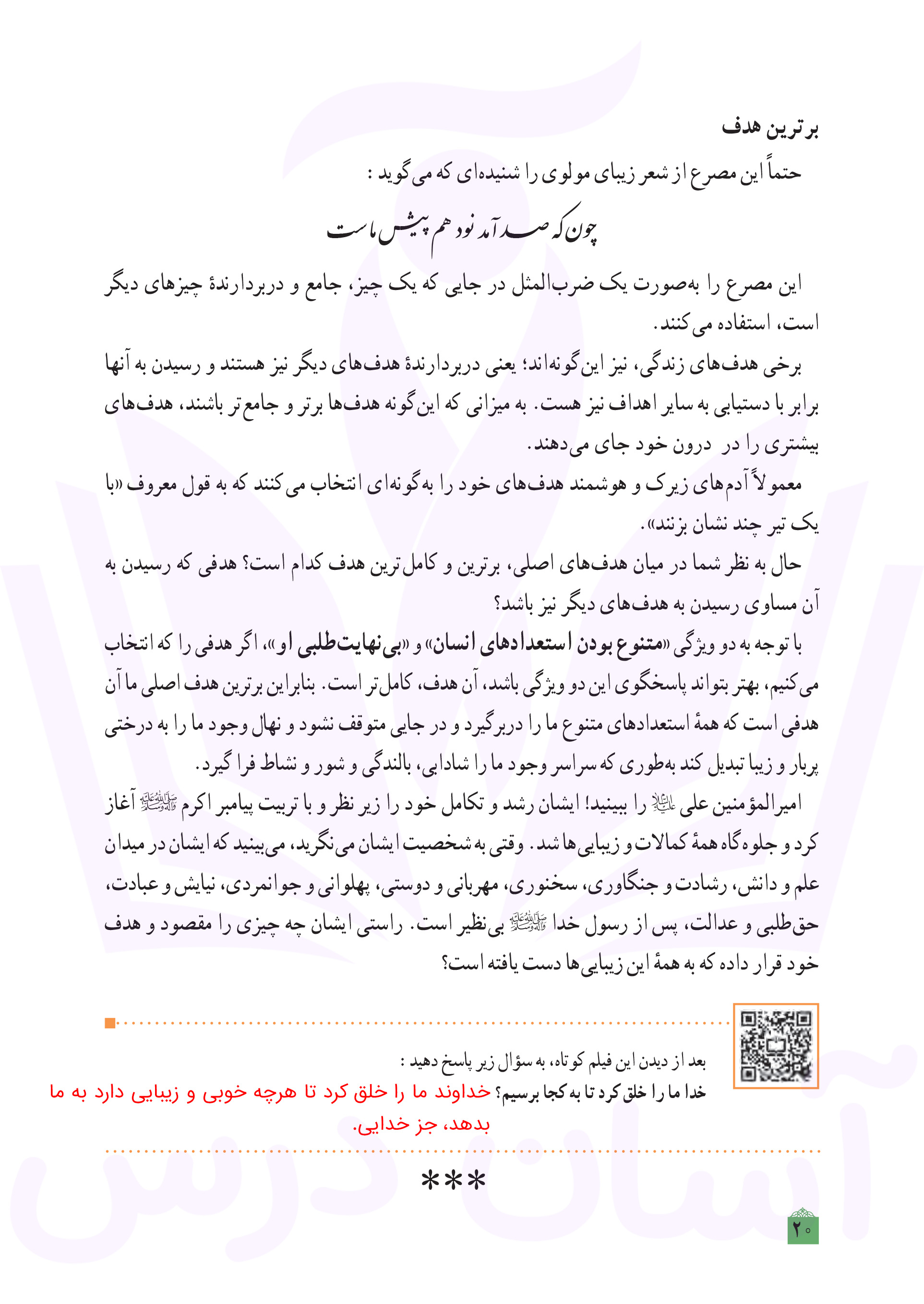 دینی دهم : پاسخ سوالات صفحه ۲۰ (ریاضی – تجربی – فنی)