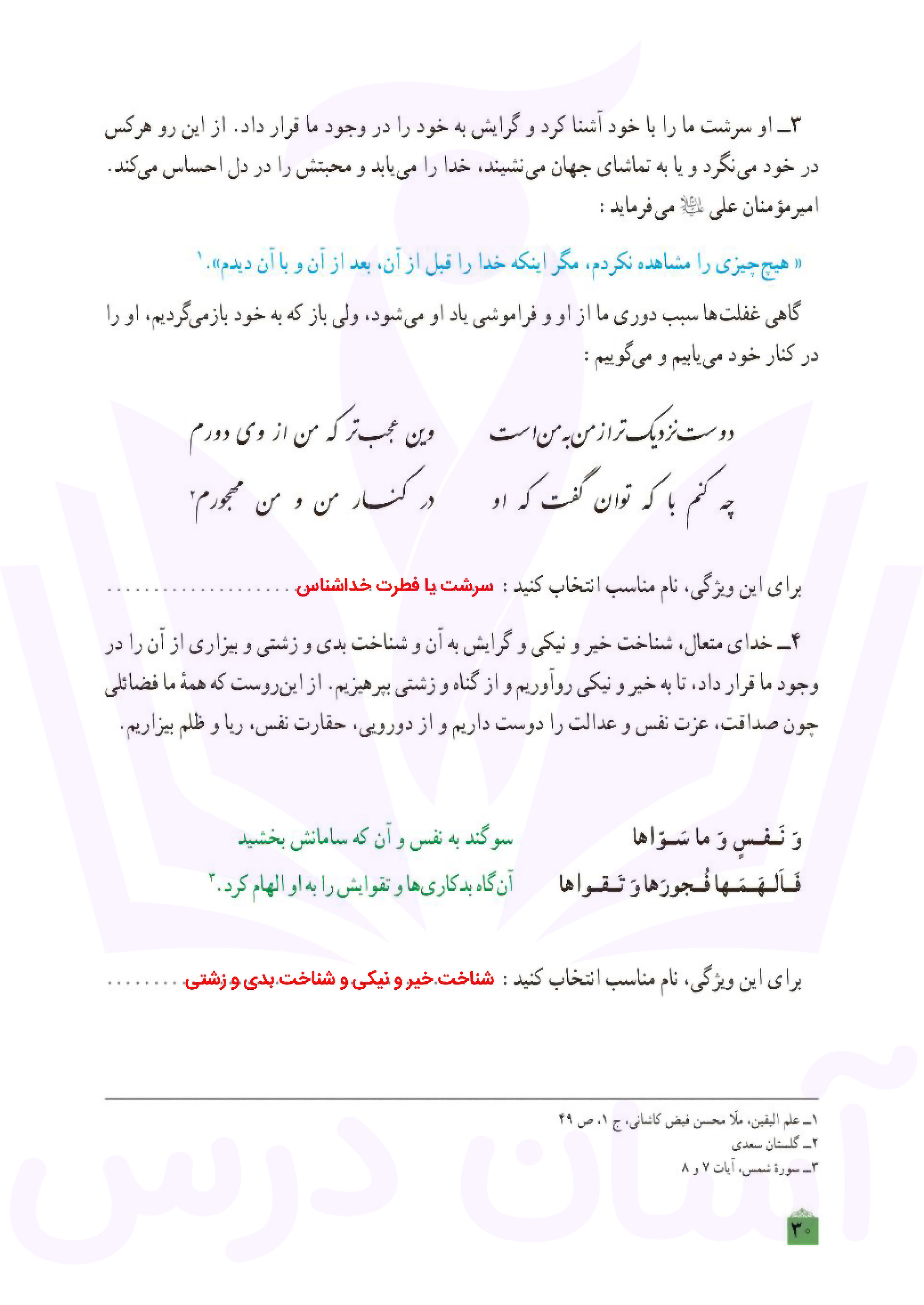 دینی دهم : پاسخ سوالات صفحه ۳۰