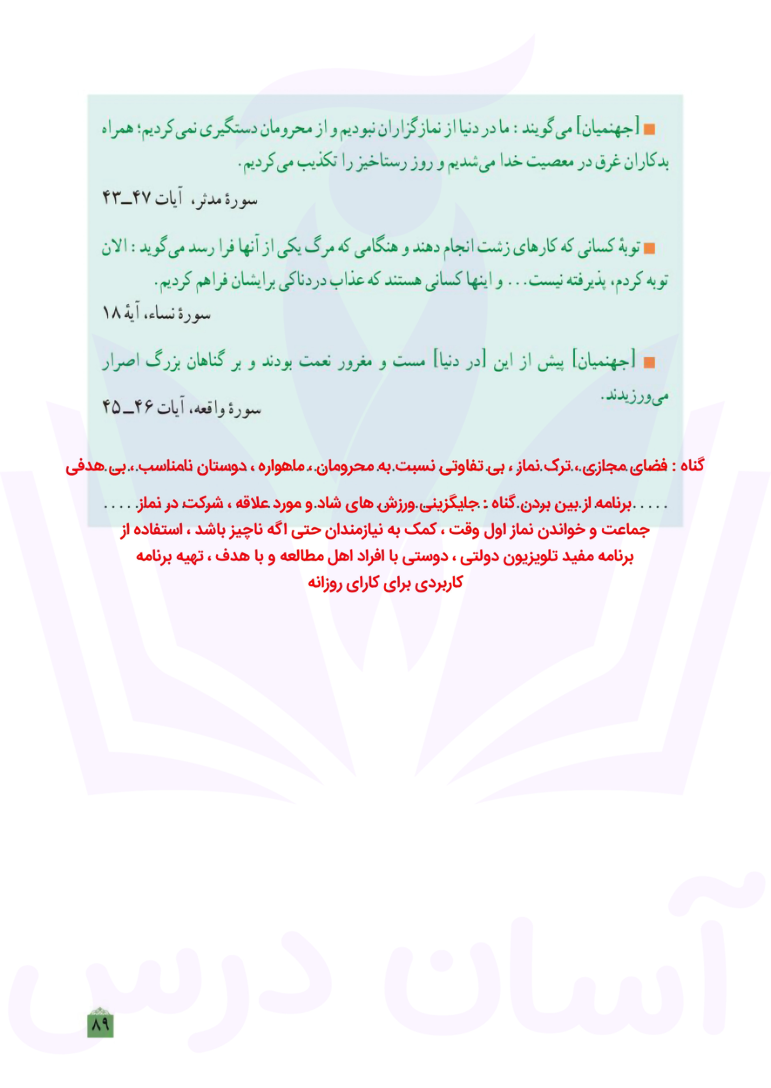 دینی دهم : پاسخ تدبّر صفحه ۸۹ (ریاضی – تجربی – فنی)