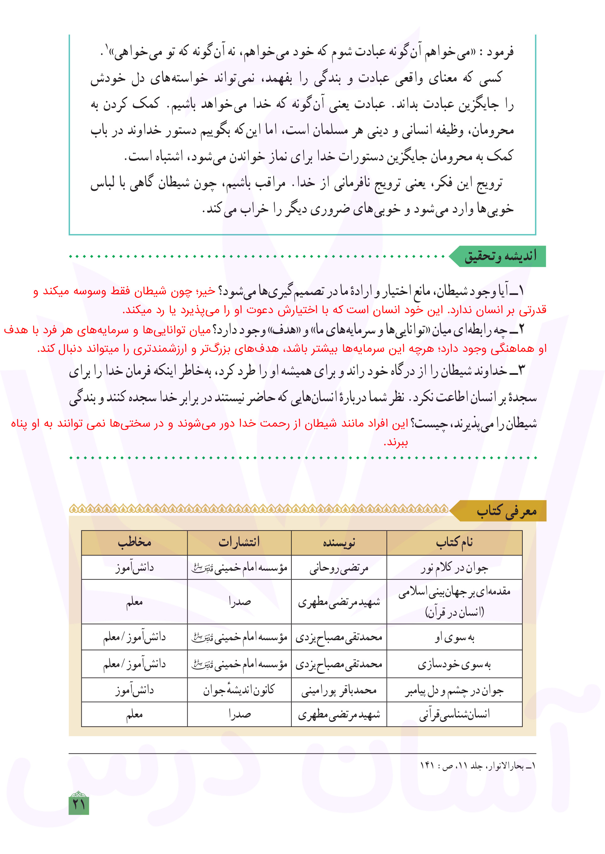 دینی دهم : پاسخ اندیشه و تحقیق صفحه ۲۱