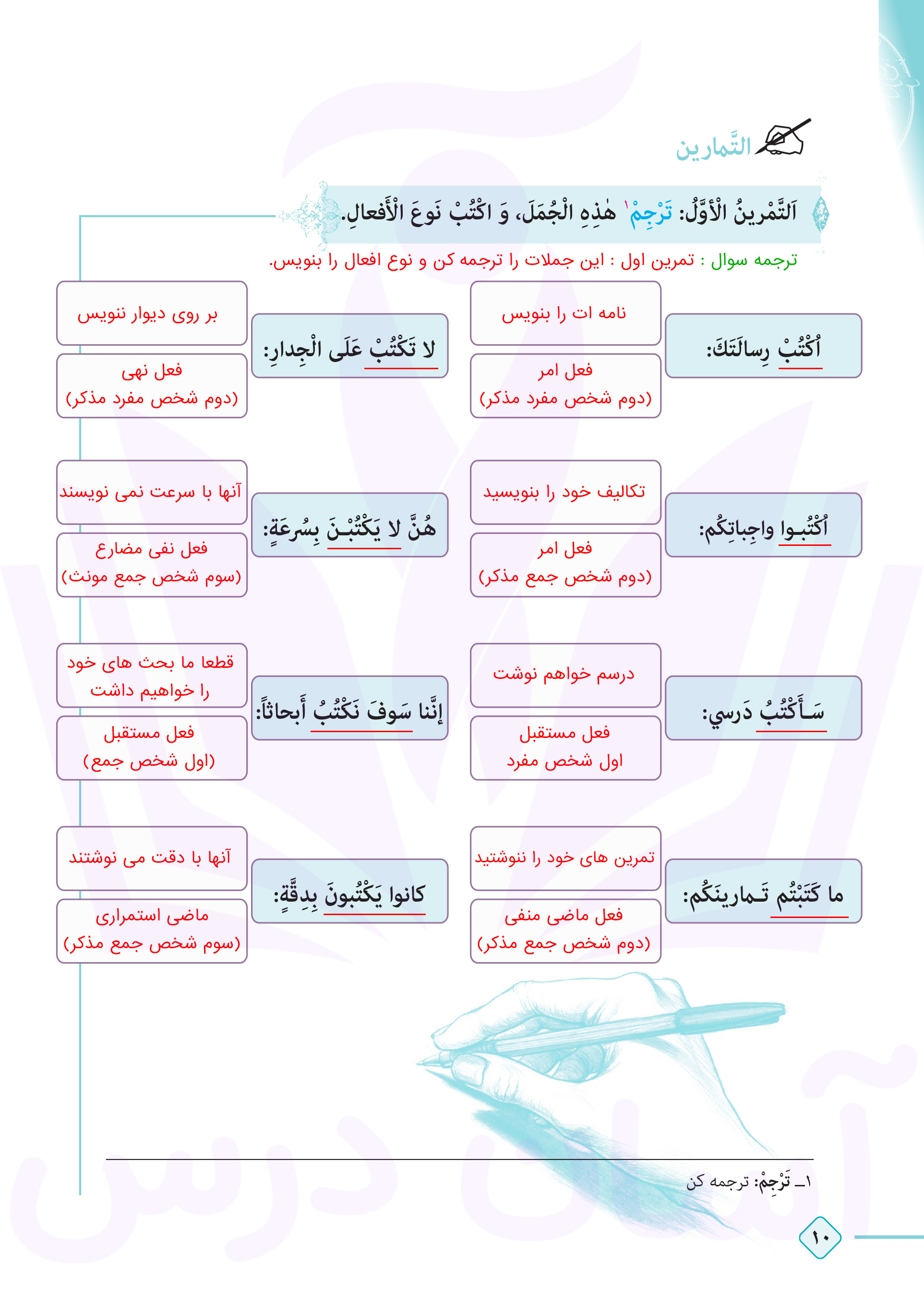 عربی دهم : پاسخ تمرینات صفحه ۱۰