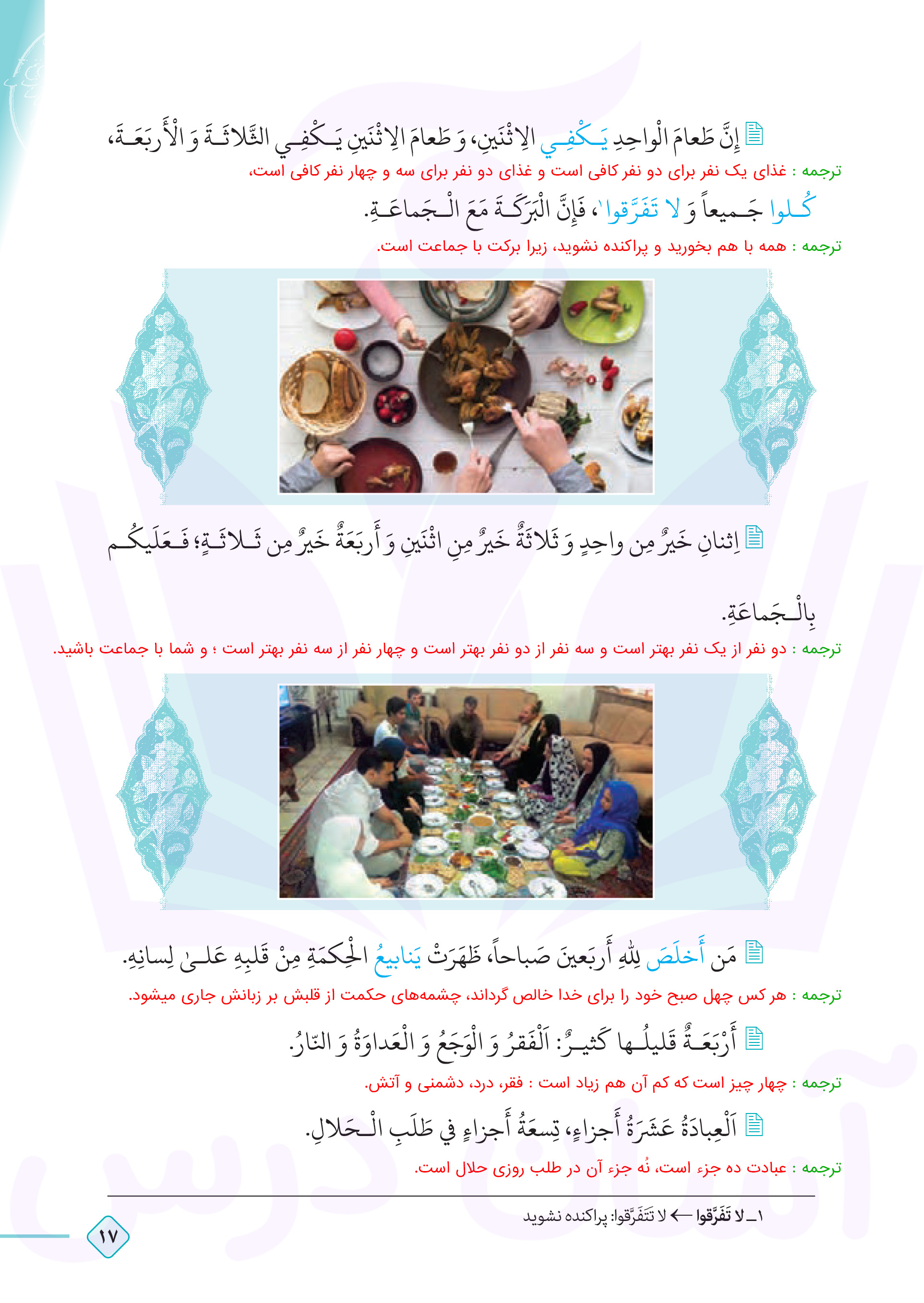 عربی دهم : ترجمه درس دوم صفحه ۱۷