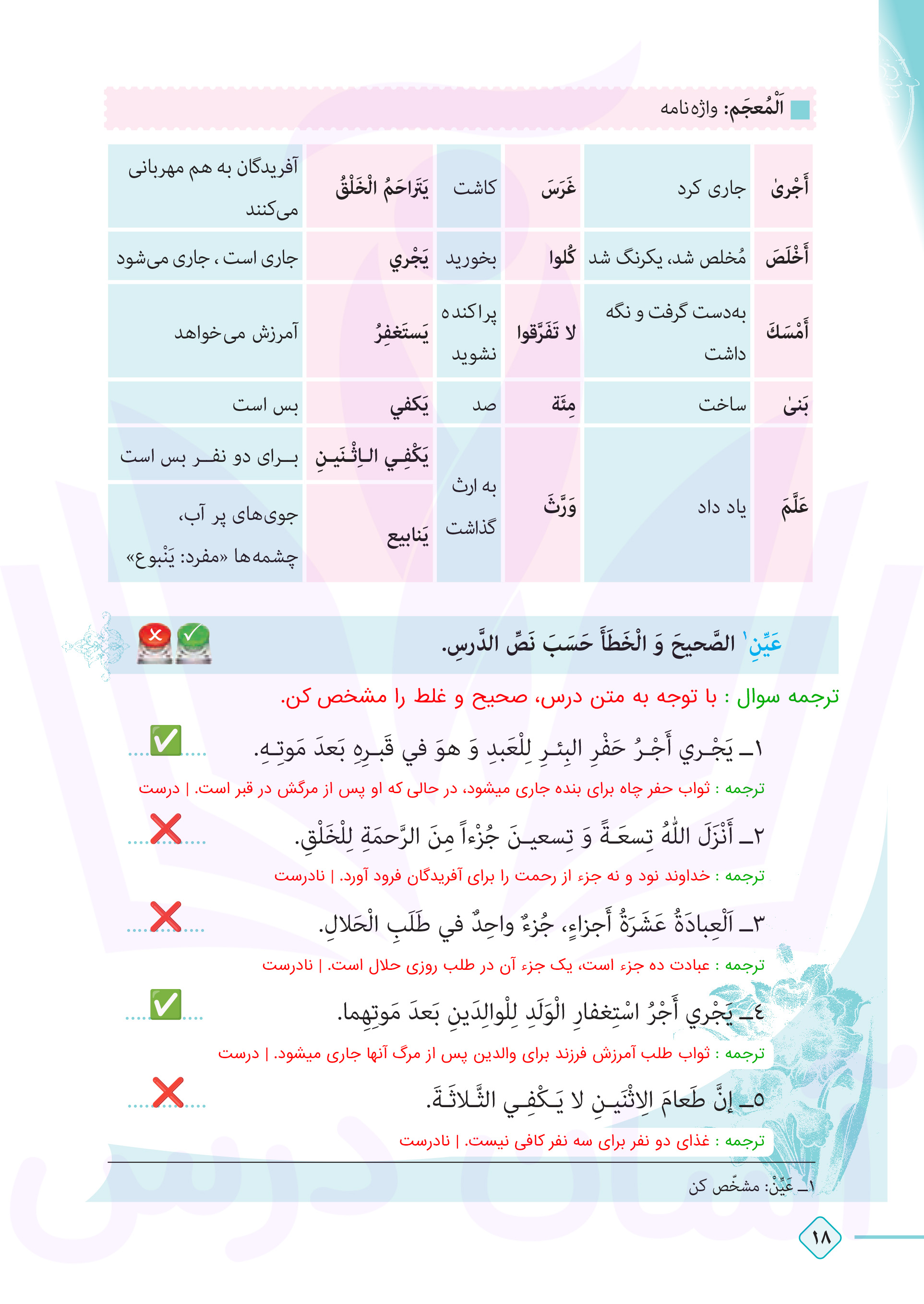 عربی دهم : پاسخ سوالات صفحه ۱۸