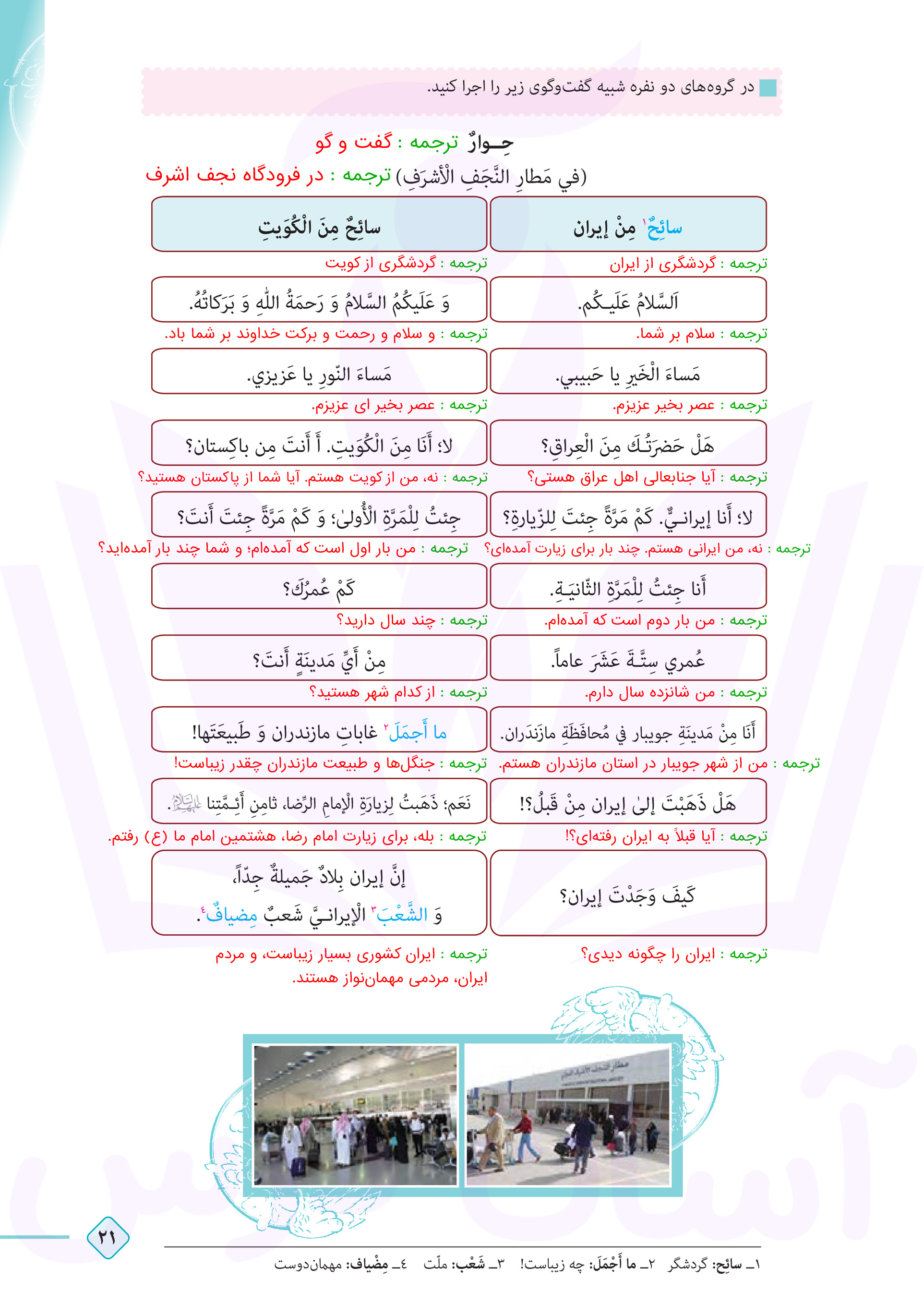 عربی دهم : ترجمه حِوار صفحه ۲۱