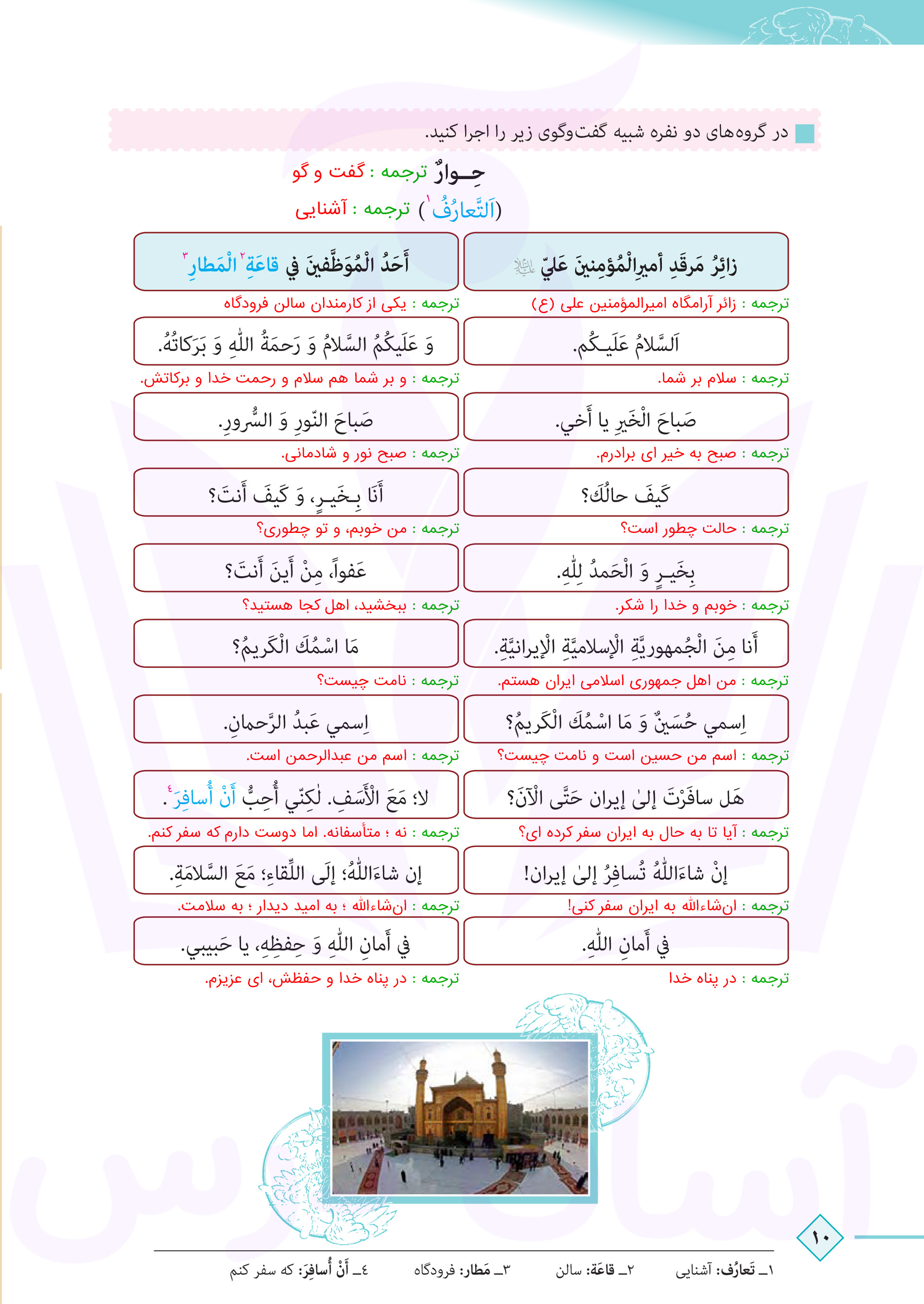 عربی دهم : ترجمه حِوار صفحه ۱۰