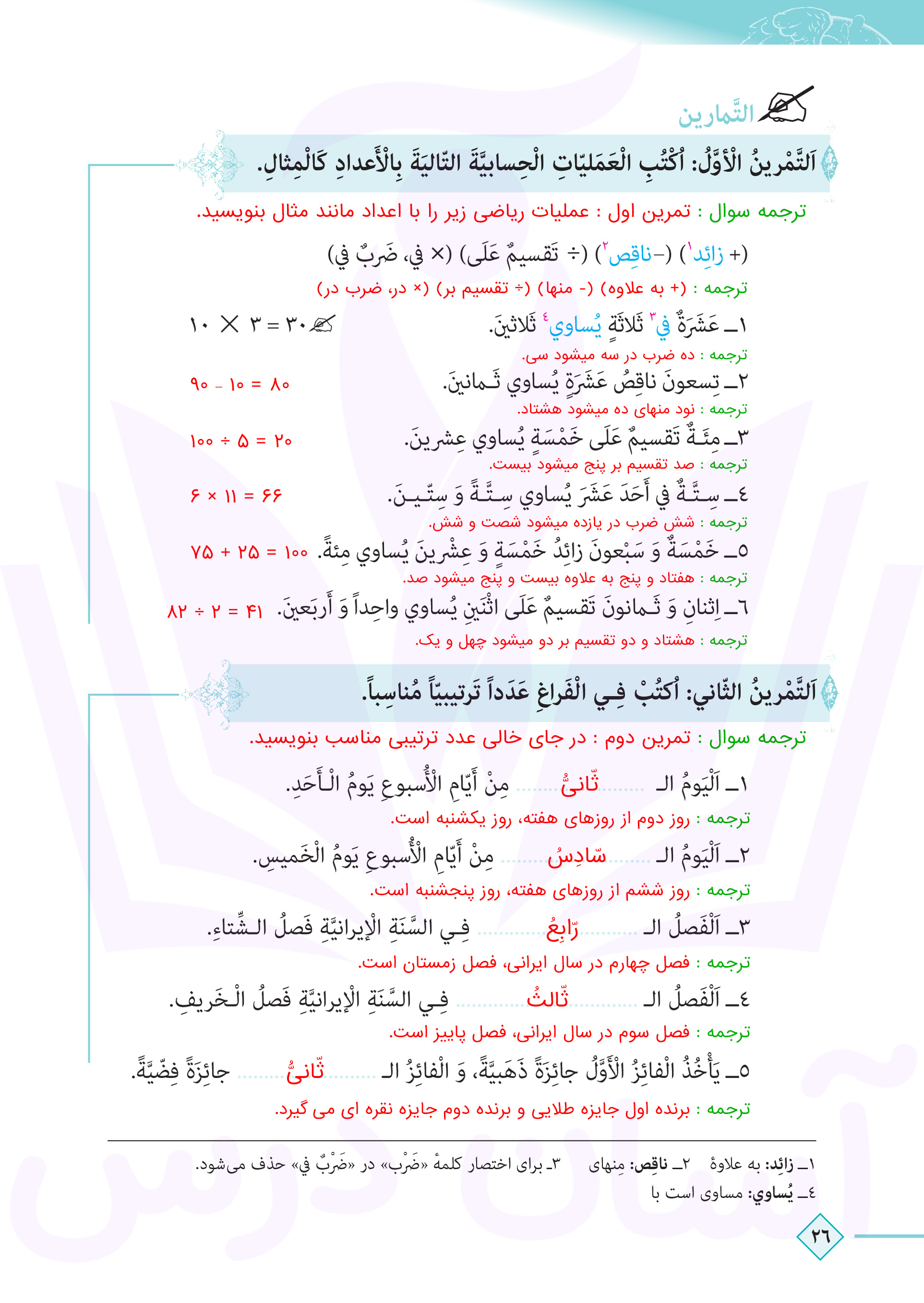 عربی دهم : پاسخ تمرینات صفحه ۲۶