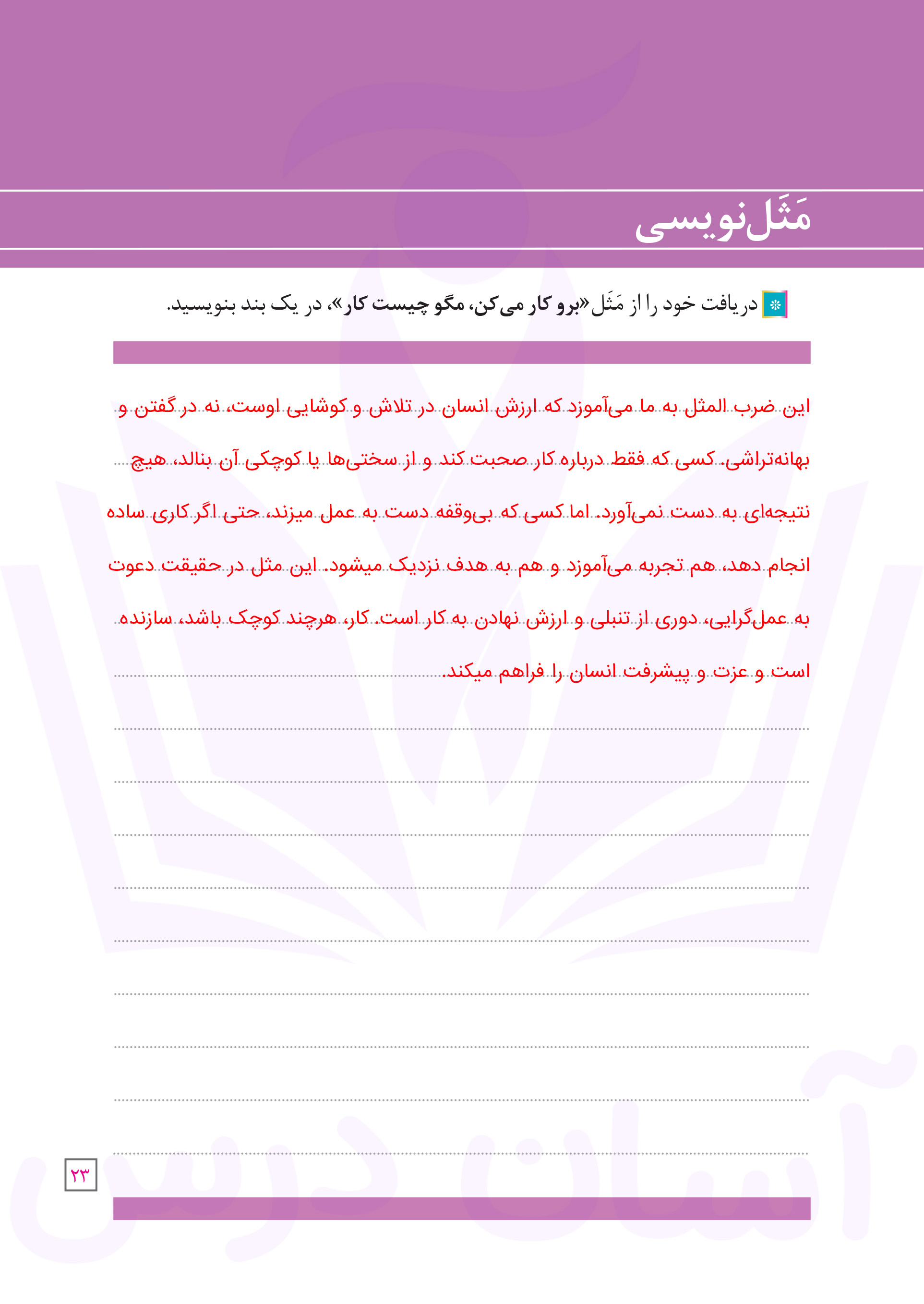 فارسی و نگارش دهم : پاسخ مَثَل نویسی صفحه ۲۳