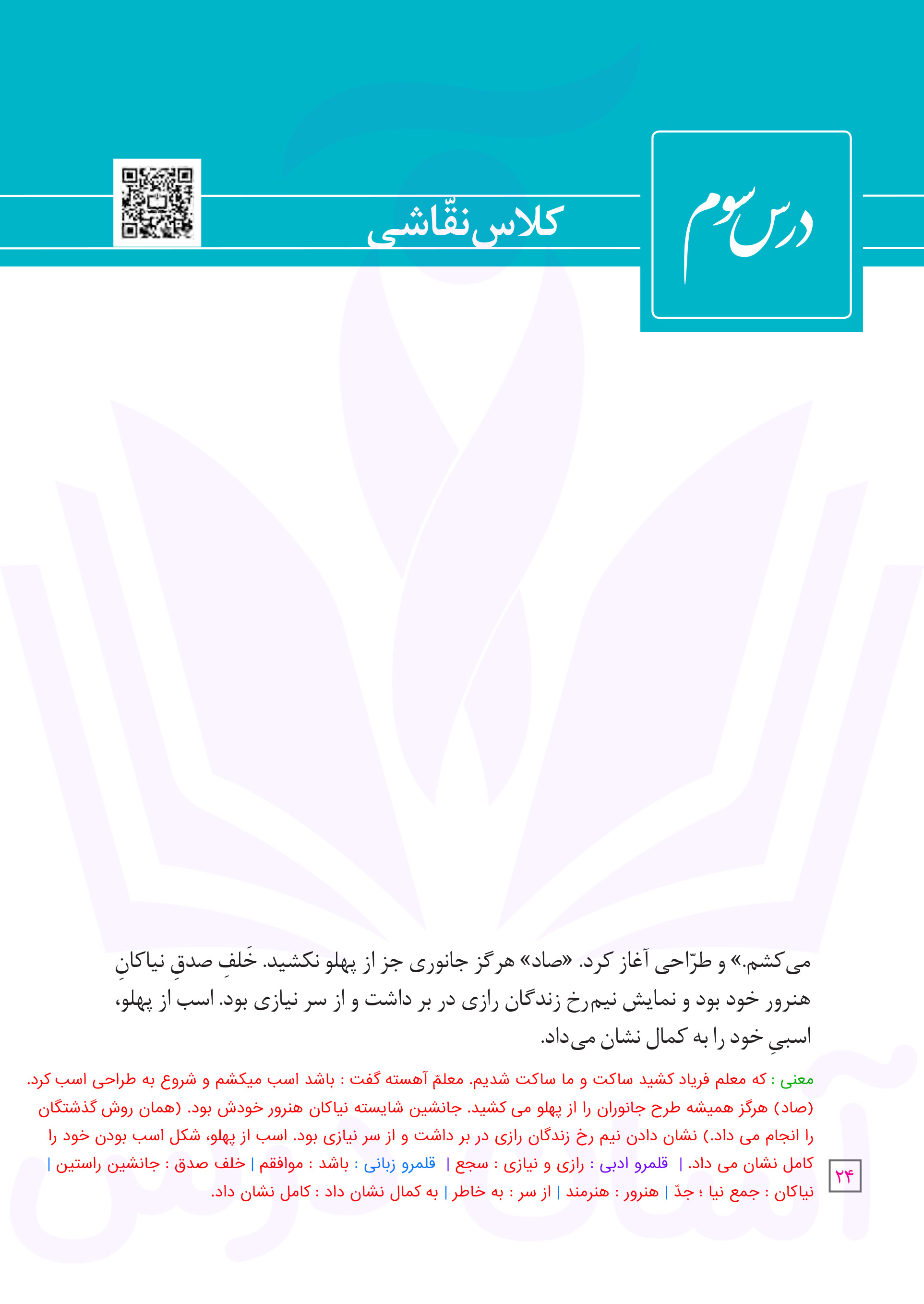 فارسی و نگارش دهم : معنی درس سوم (کلاس نقّاشی) صفحه ۲۴