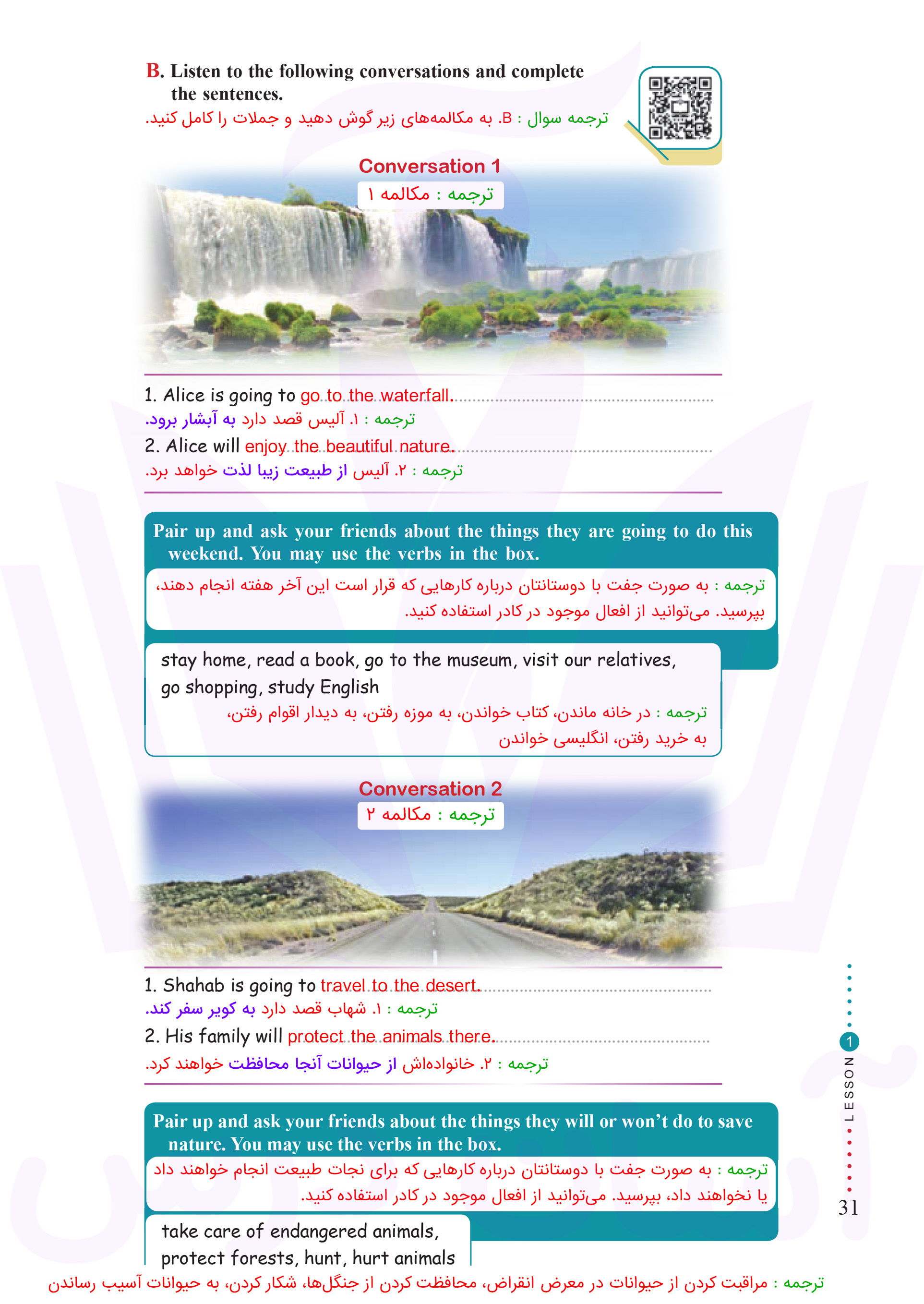 انگلیسی دهم : پاسخ سوالات صفحه ۳۱