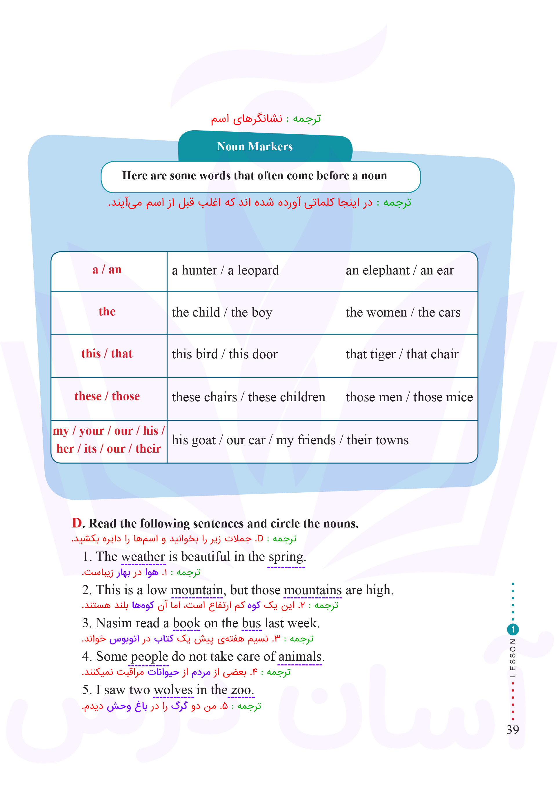 انگلیسی دهم : ترجمه و پاسخ سوالات صفحه ۳۹