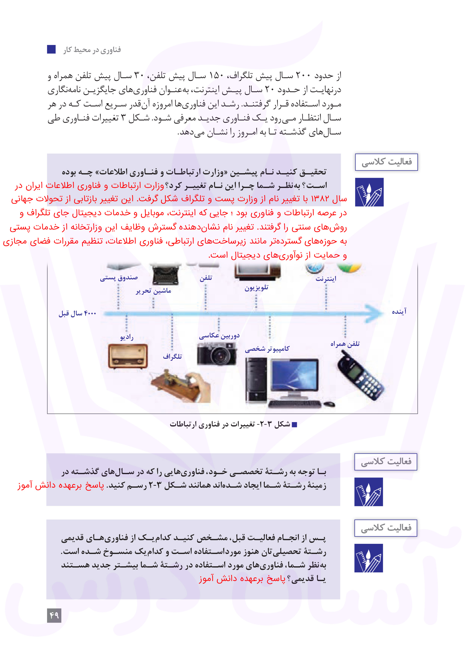الزامات دهم : پاسخ فعالیت کلاسی صفحه ۴۹