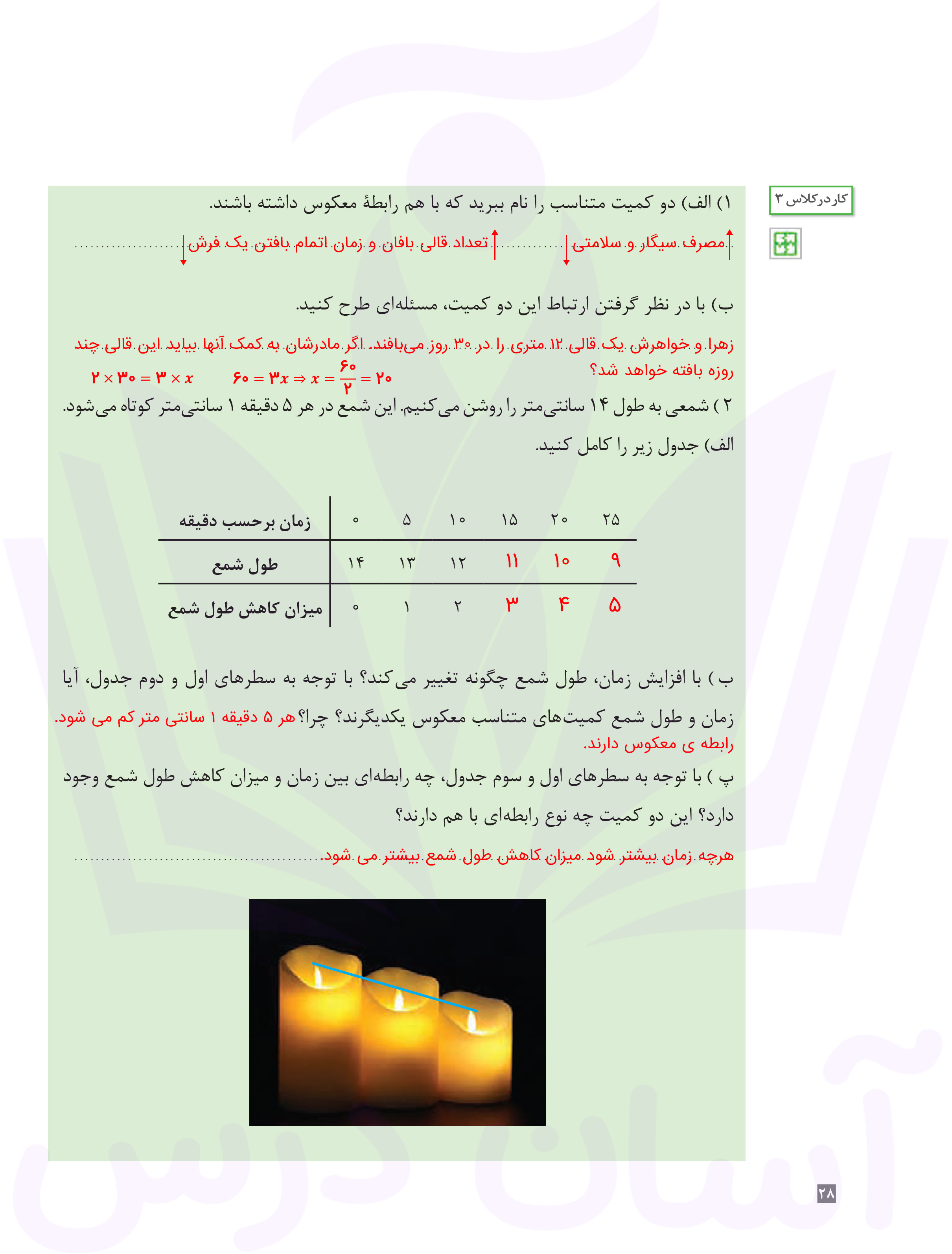 ریاضی دهم : پاسخ کار در کلاس صفحه ۲۸