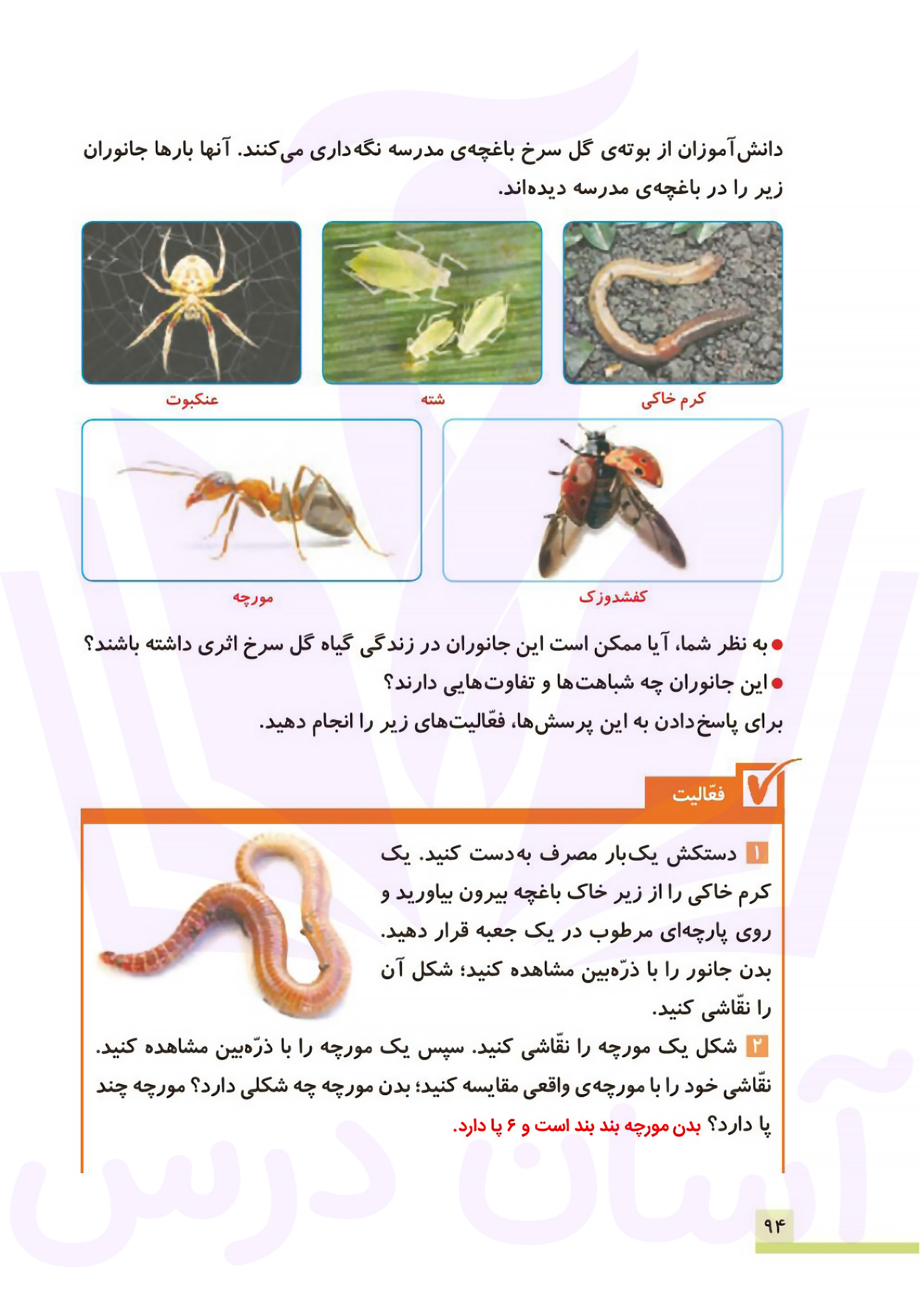 علوم چهارم : پاسخ سوالات صفحه ۹۴