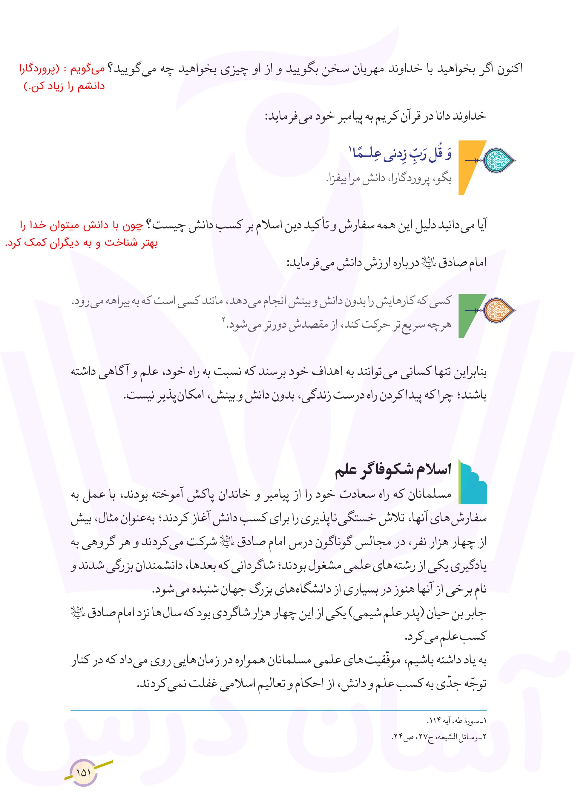 پیام آسمان هفتم : پاسخ سوالات صفحه ۱۵۱