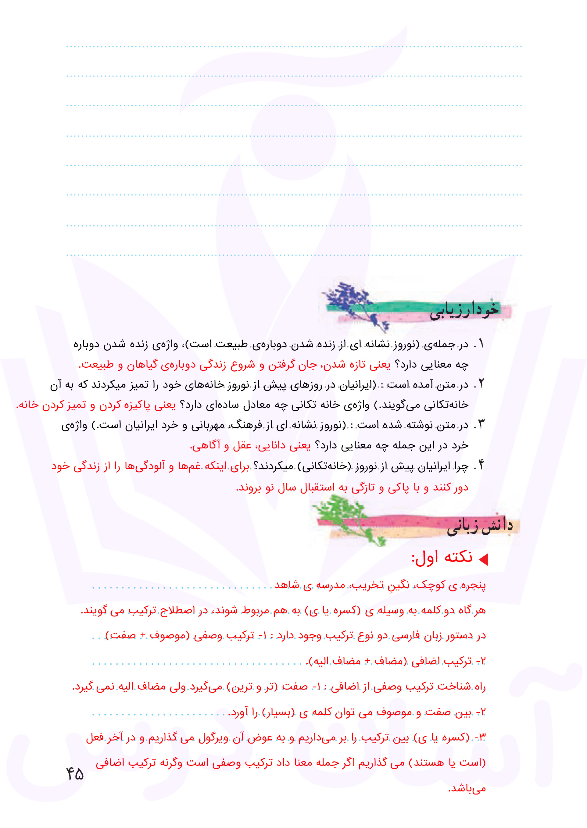 فارسی هفتم : پاسخ درس آزاد صفحه ۴۵