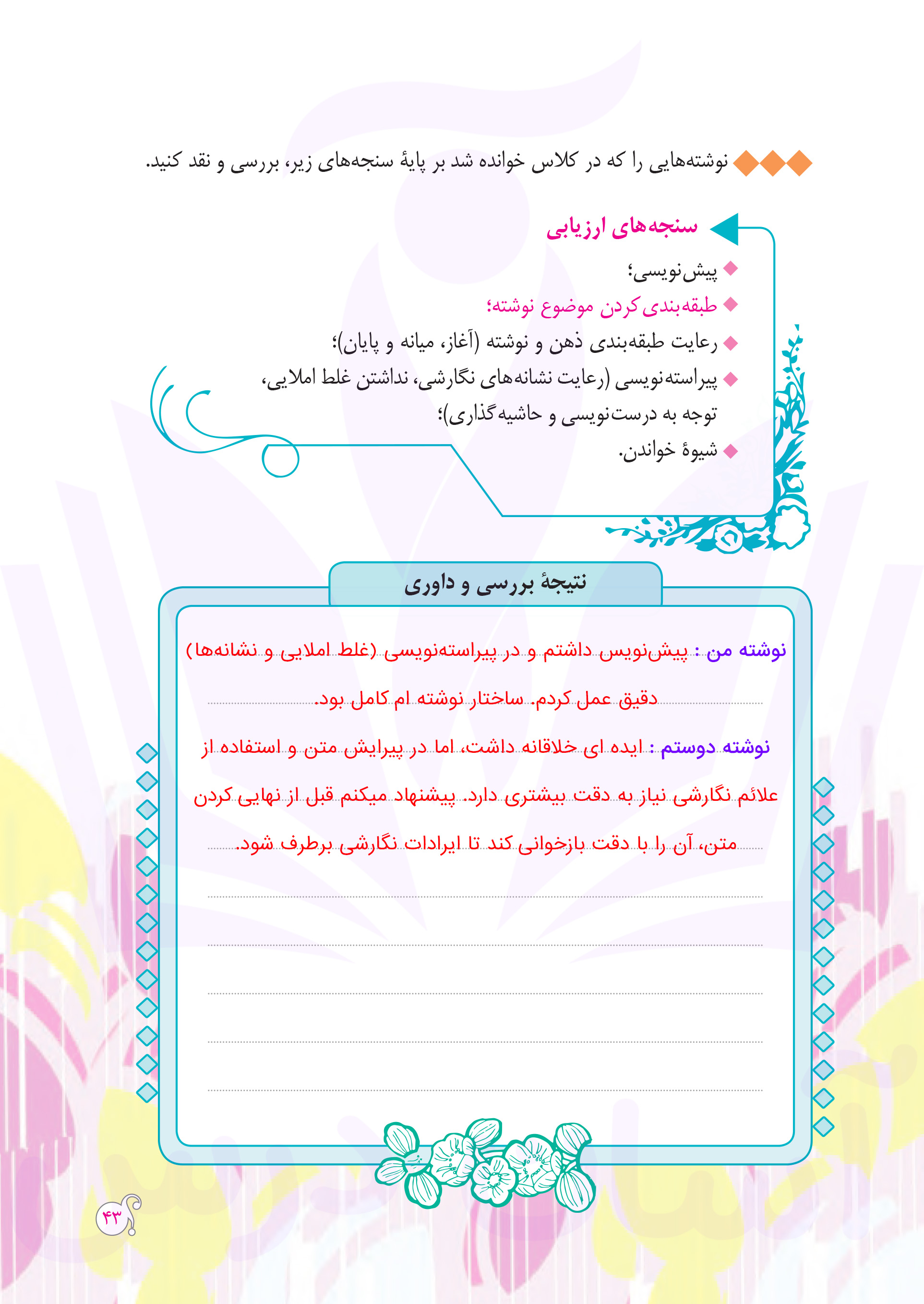 نگارش هفتم : پاسخ سوالات صفحه ۴۳