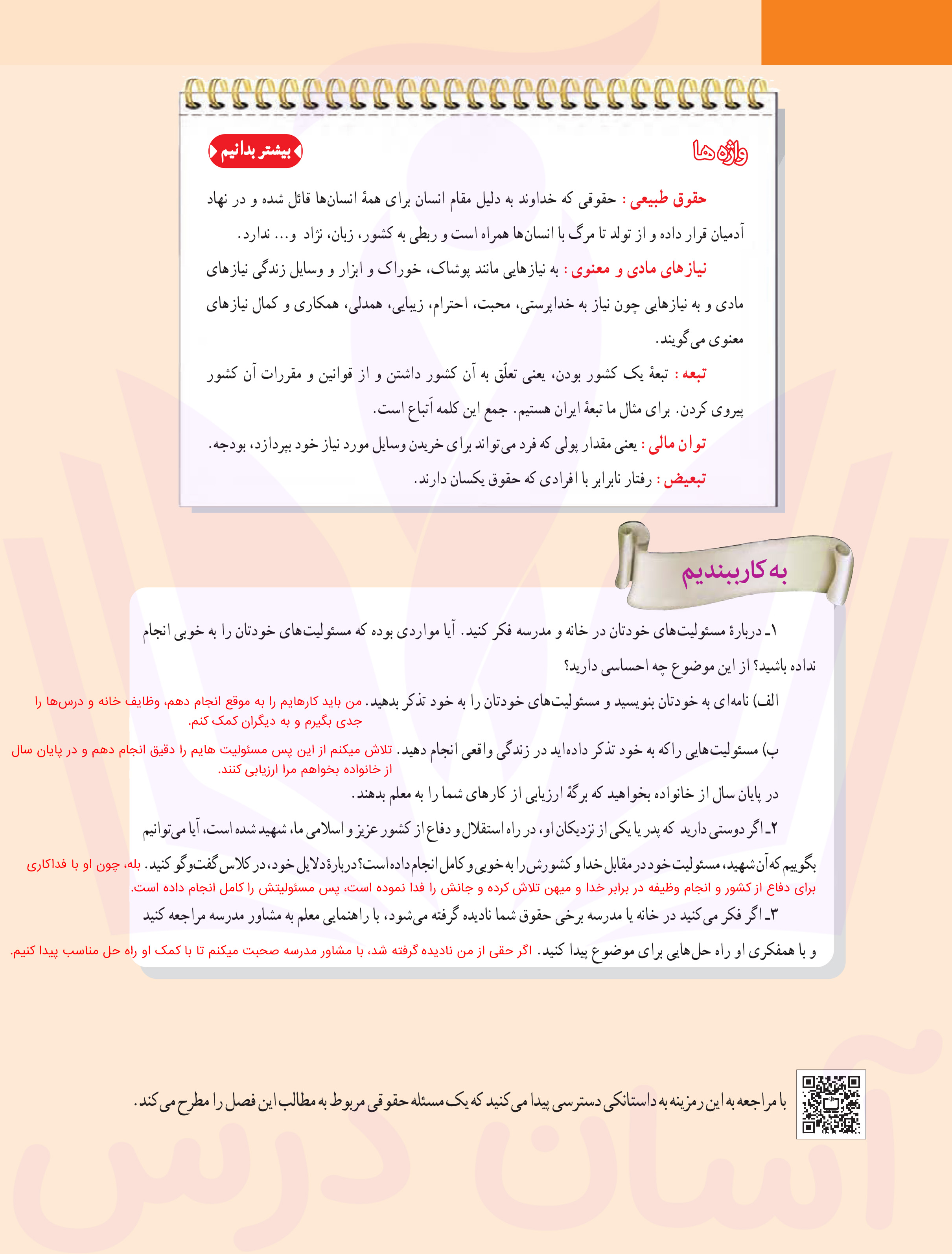 مطالعات هفتم : پاسخ سوالات صفحه ۱۲