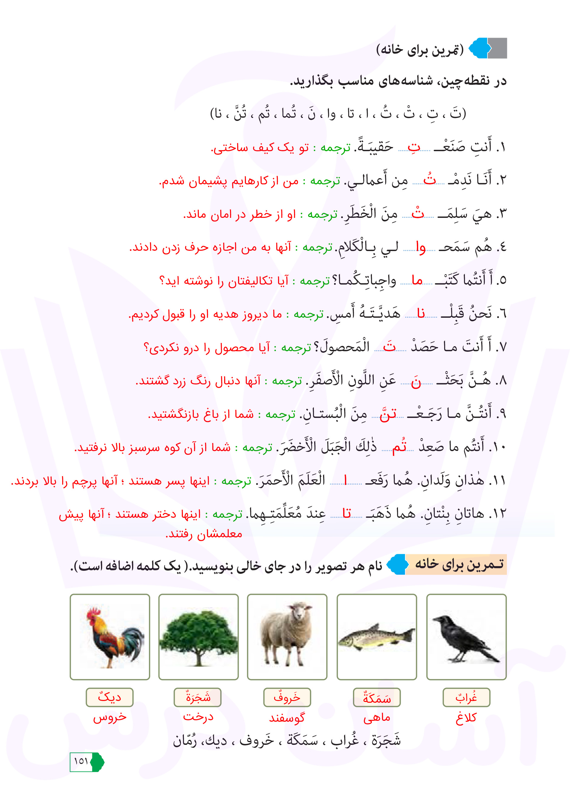 عربی هفتم : پاسخ تمرین برای خانه صفحه ۱۵۱